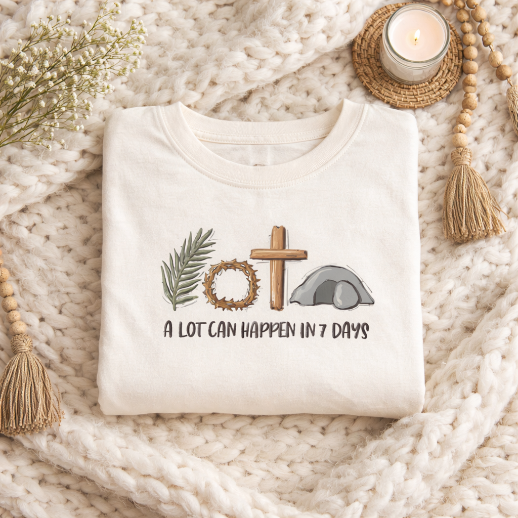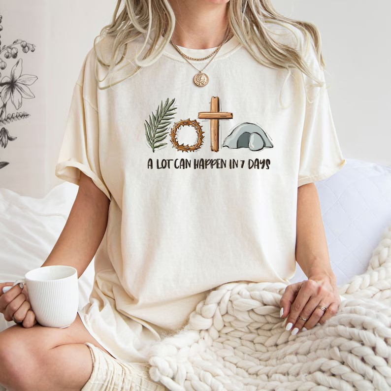 A Lot Can Happen In 7 Days Shirt, Comfort Colors Easter Tee, Christian Religious Graphic Tee, Jesus Faith Shirt, Easter Gift for Women CFLAF062
