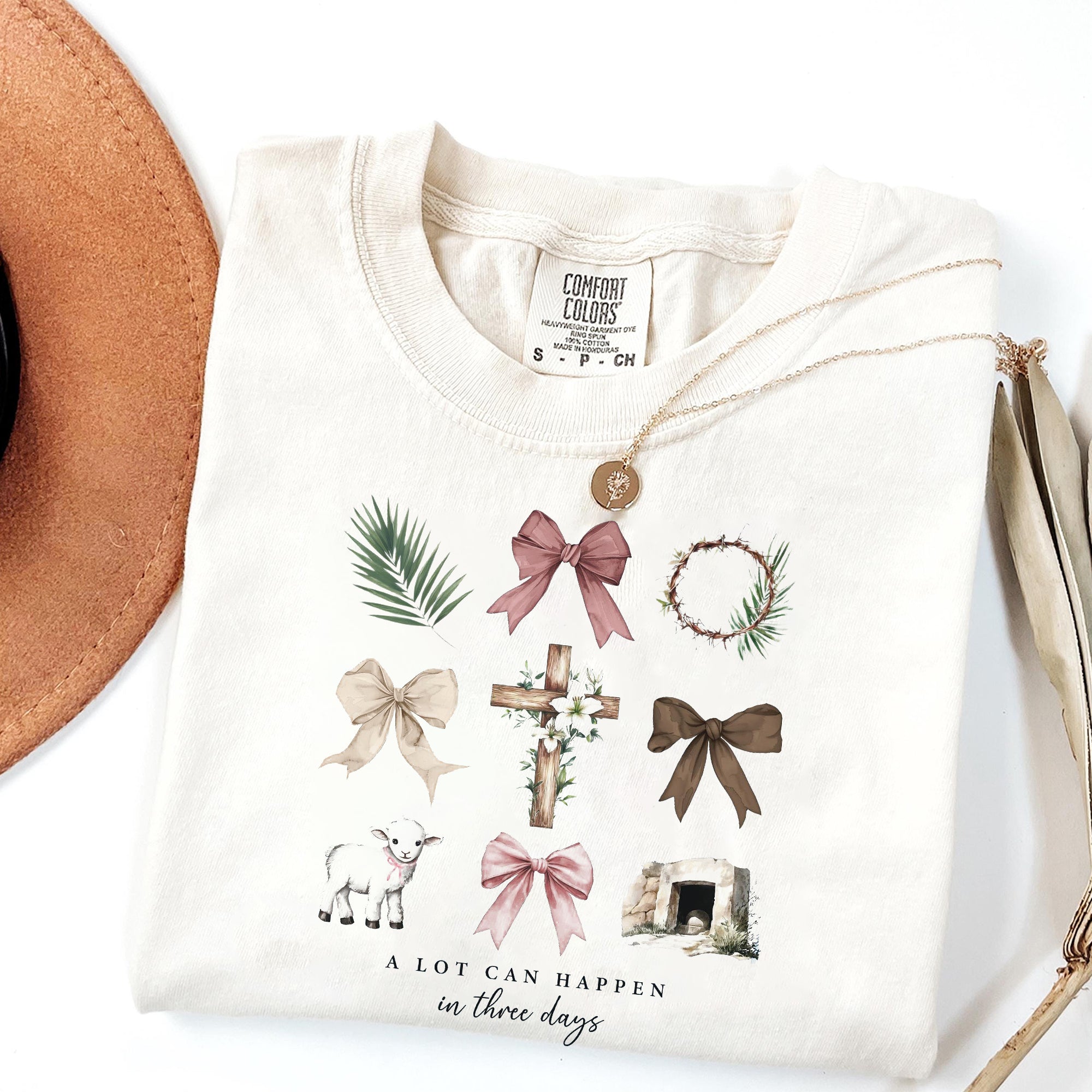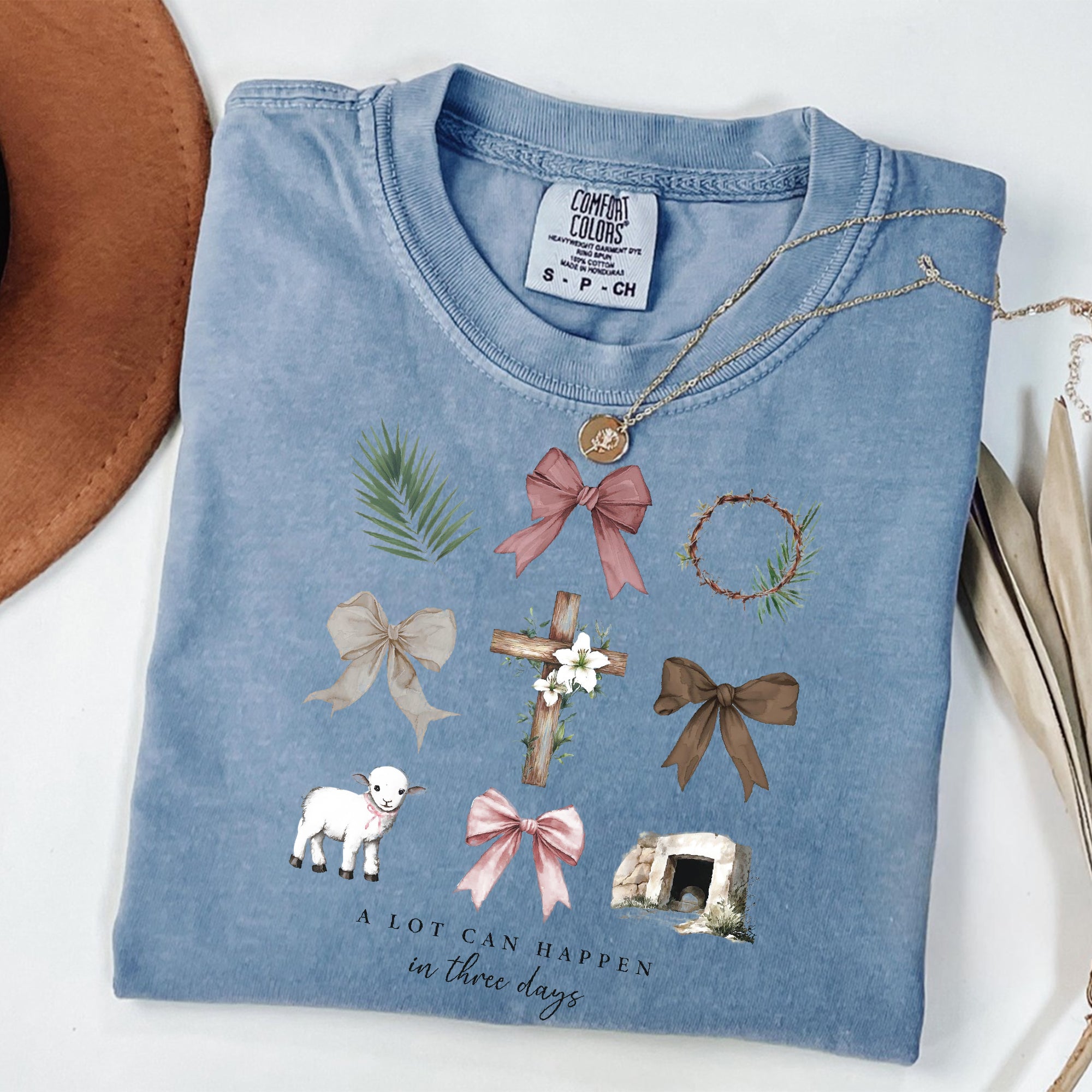 Comfort Colors® Christian Easter Shirt, A lot can happen in 3 days, Coquette Trendy bow shirt for her (Unisex) True story Bible Verse Sunday