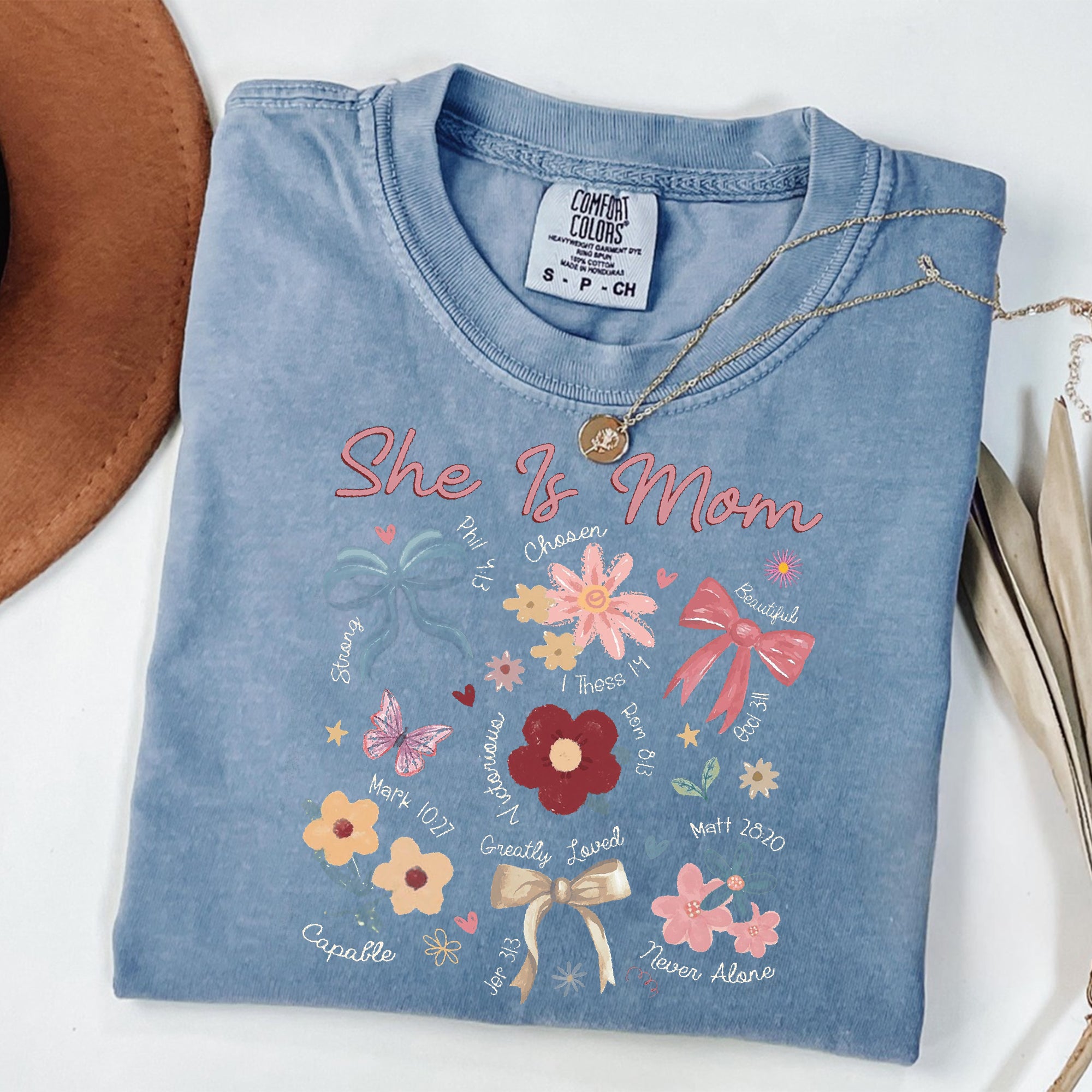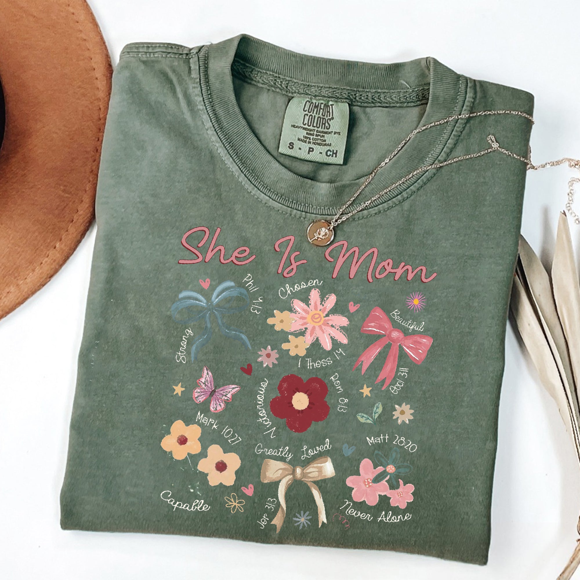 Comfort Colors® Boho Floral Shirt, She is Mom Shirt, Mother's Day Shirt, Christian Mom Shirt, Retro Christian Mom, Bible Verse Mom Tee