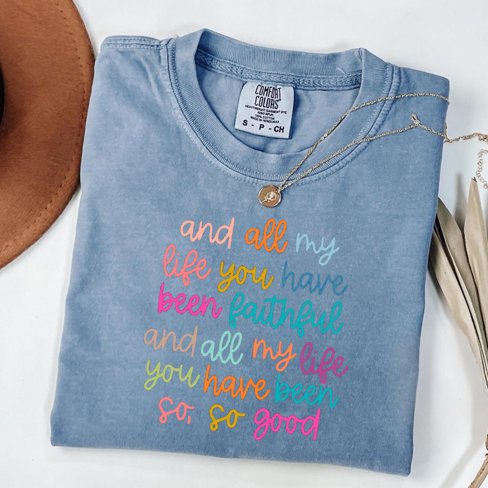 Comfort Colors® Christian Shirts Bible Verse TShirt, And all my life you have been faithful bright ,And all my life you have been faithful ,Christian Shirts