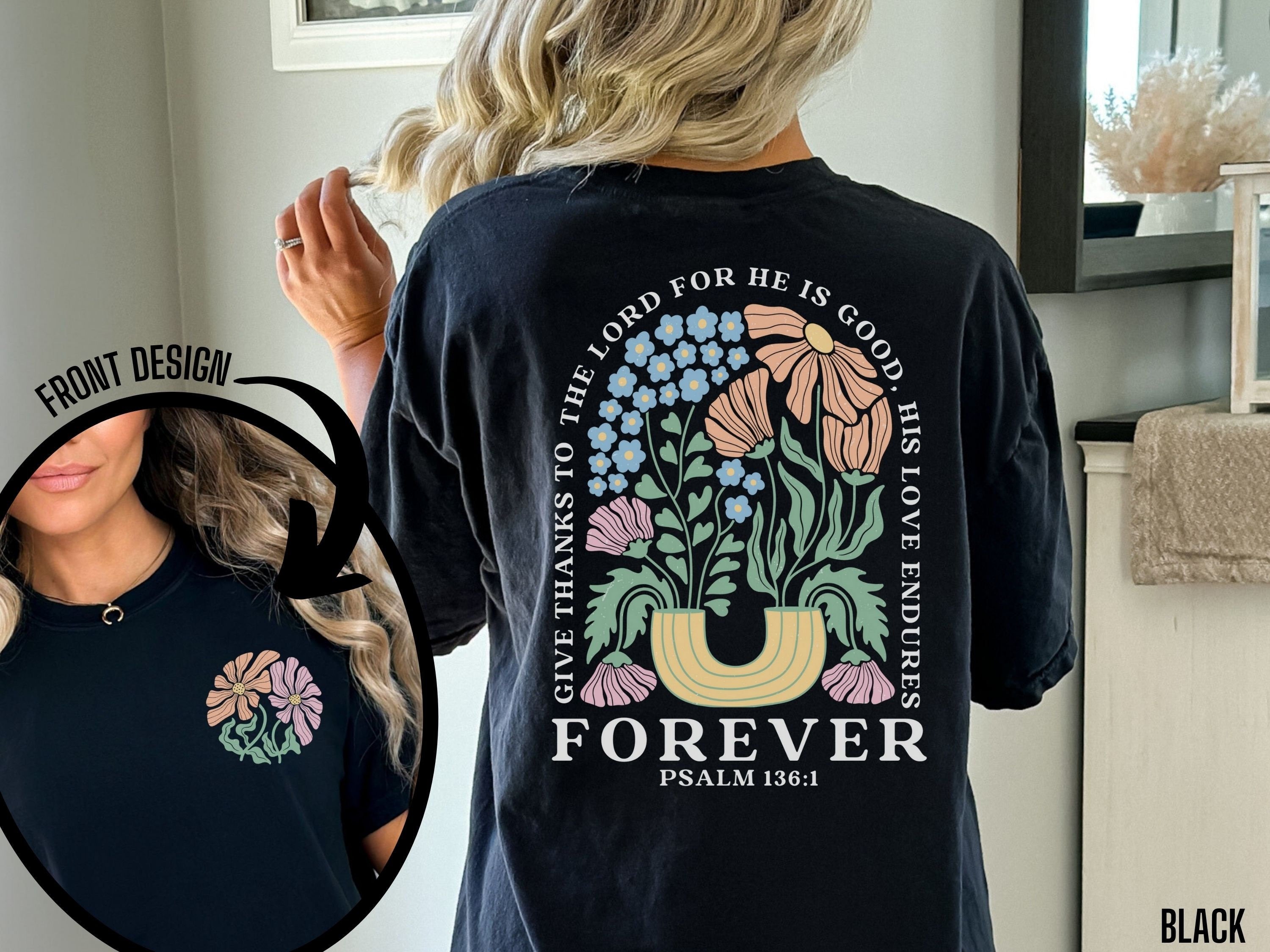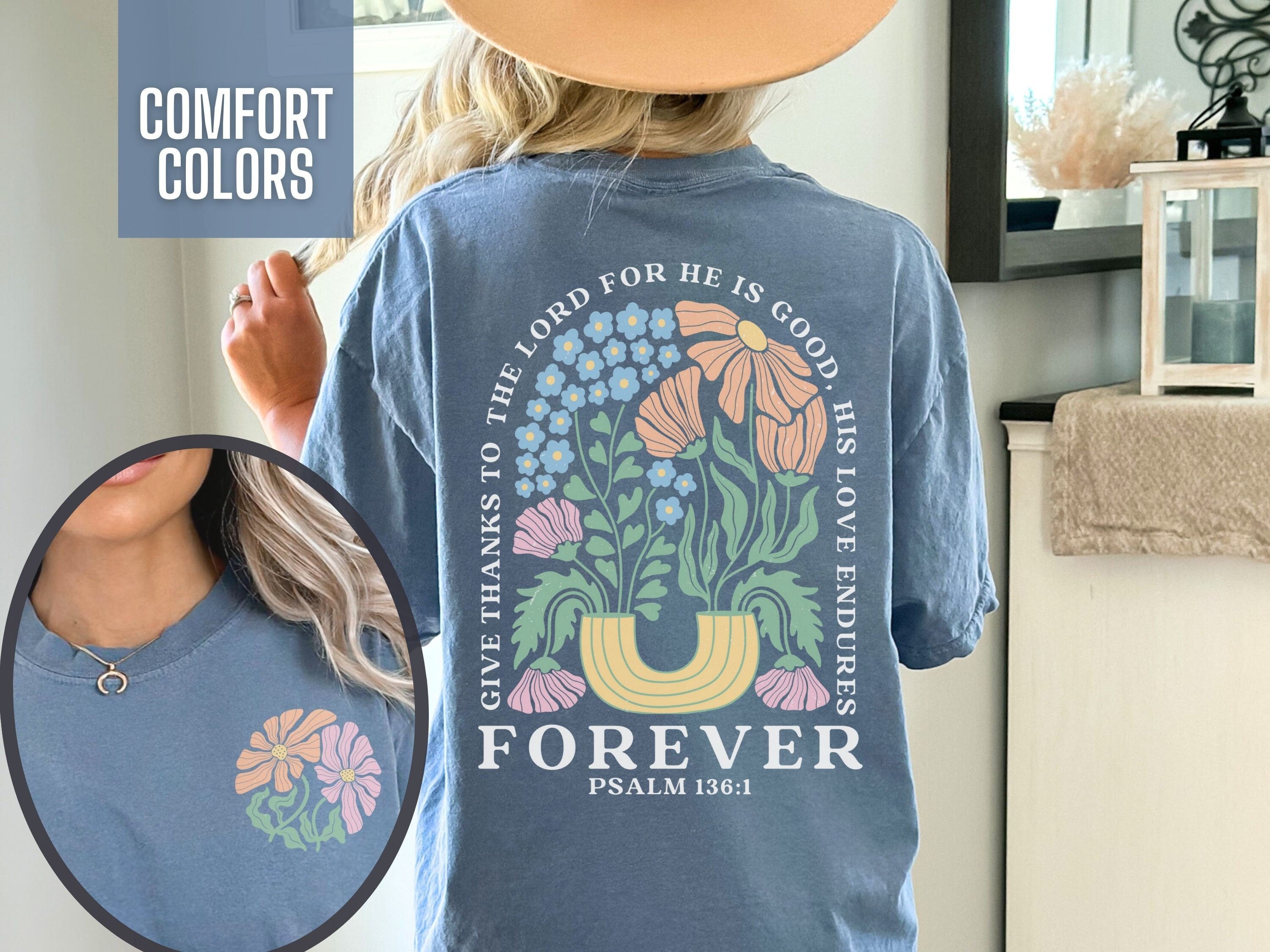 Comfort Colors® Flower Graphic Tee Retro Back Print Faith, Boho Christian Shirt Women Bible Verse Tshirt Jesus Apparel Vintage Floral T Shirt