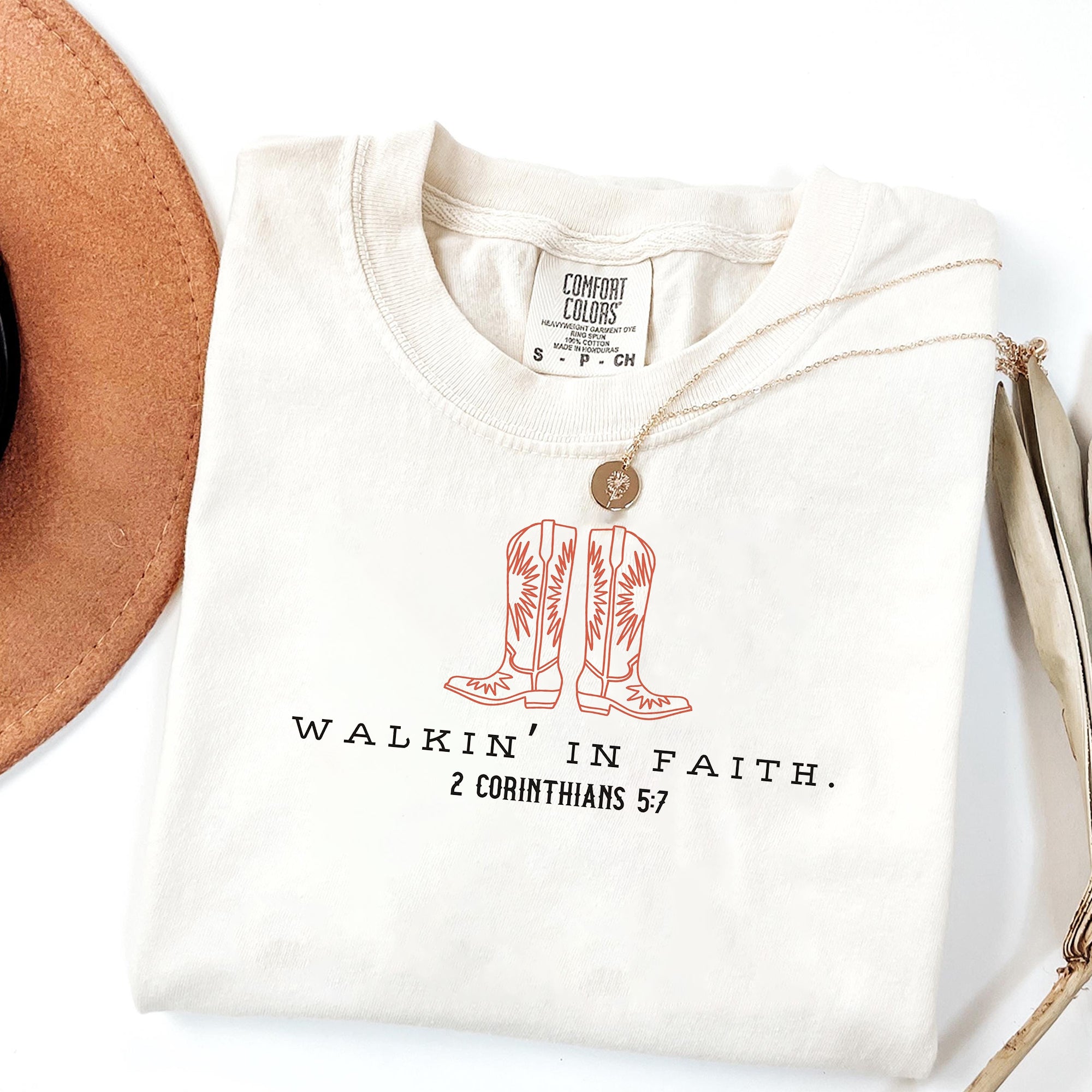 Comfort Colors® Christian Tee Walk by Faith Shirt for Christian Minimalist Faith Based Gift Idea Birthday