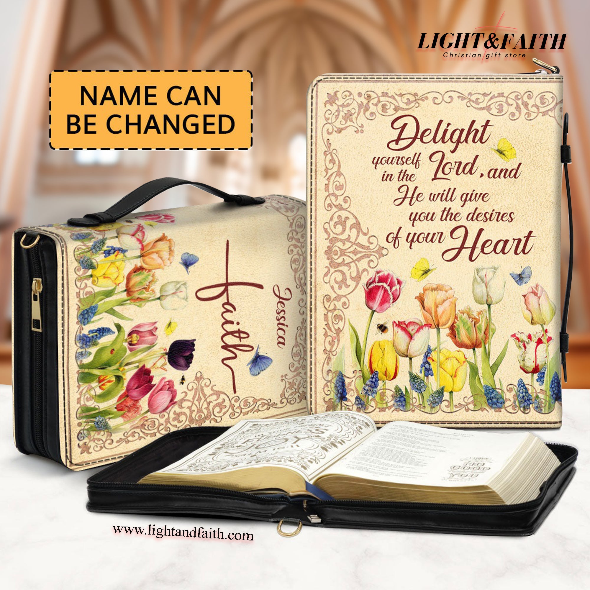 Delight Yourself In The Lord Leather Book Cover, Flower Bible Cover, Gift For Women's Ministry, Christian Gift, Bible Covers Jesus Gifts