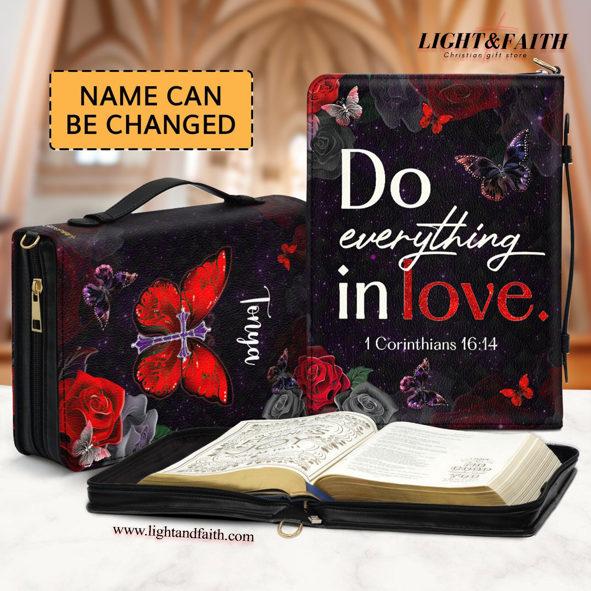 Do Everything in Love Leather Book Cover, Personalized Zippered Bible Cover With Handle, 1 Corinthians 16:14, Christian Anniversary Gifts For Couple, Christian Gift, Bible Covers Jesus Gifts
