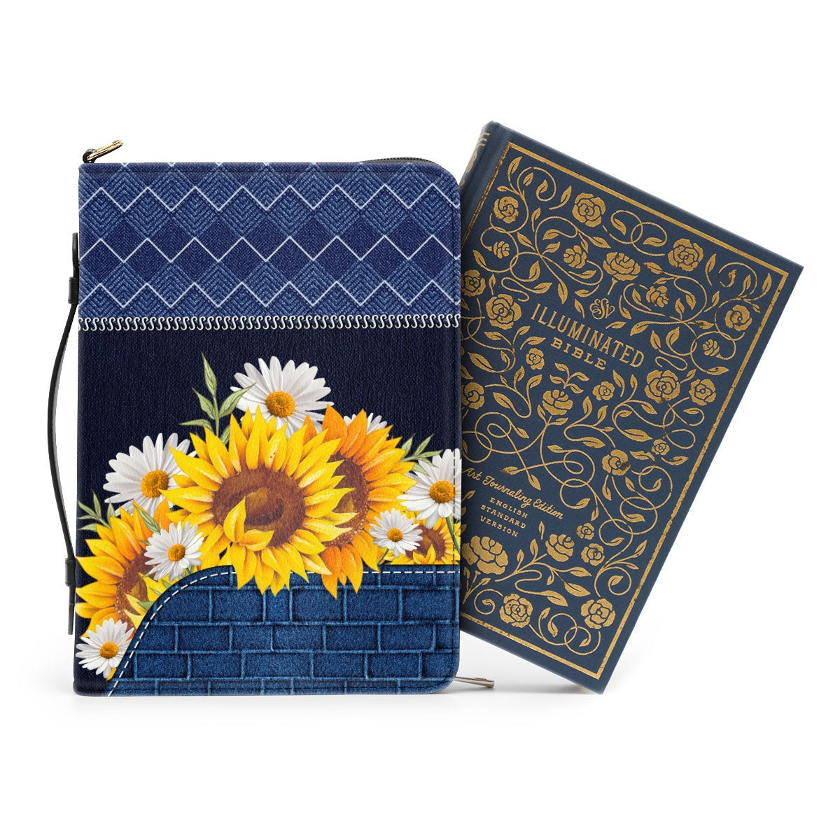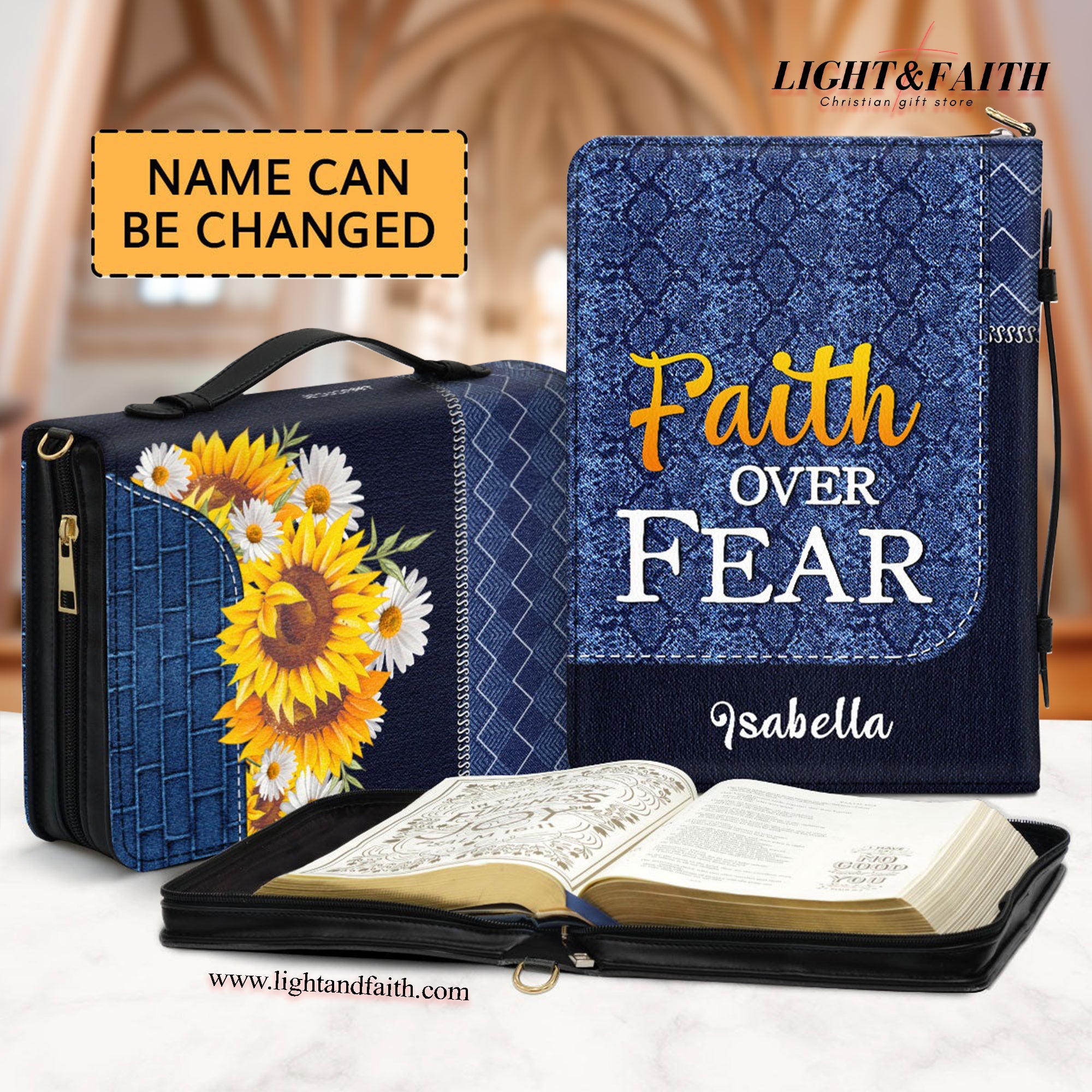 Faith Over Fear Leather Book Cover, Personalized Sunflower Bible Cover With Handle, Scripture Gifts For Christian Prayers, Christian Gift, Bible Covers Jesus Gifts
