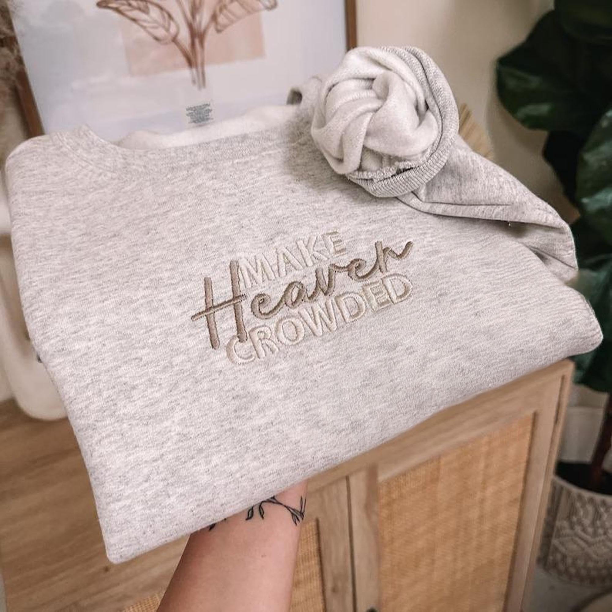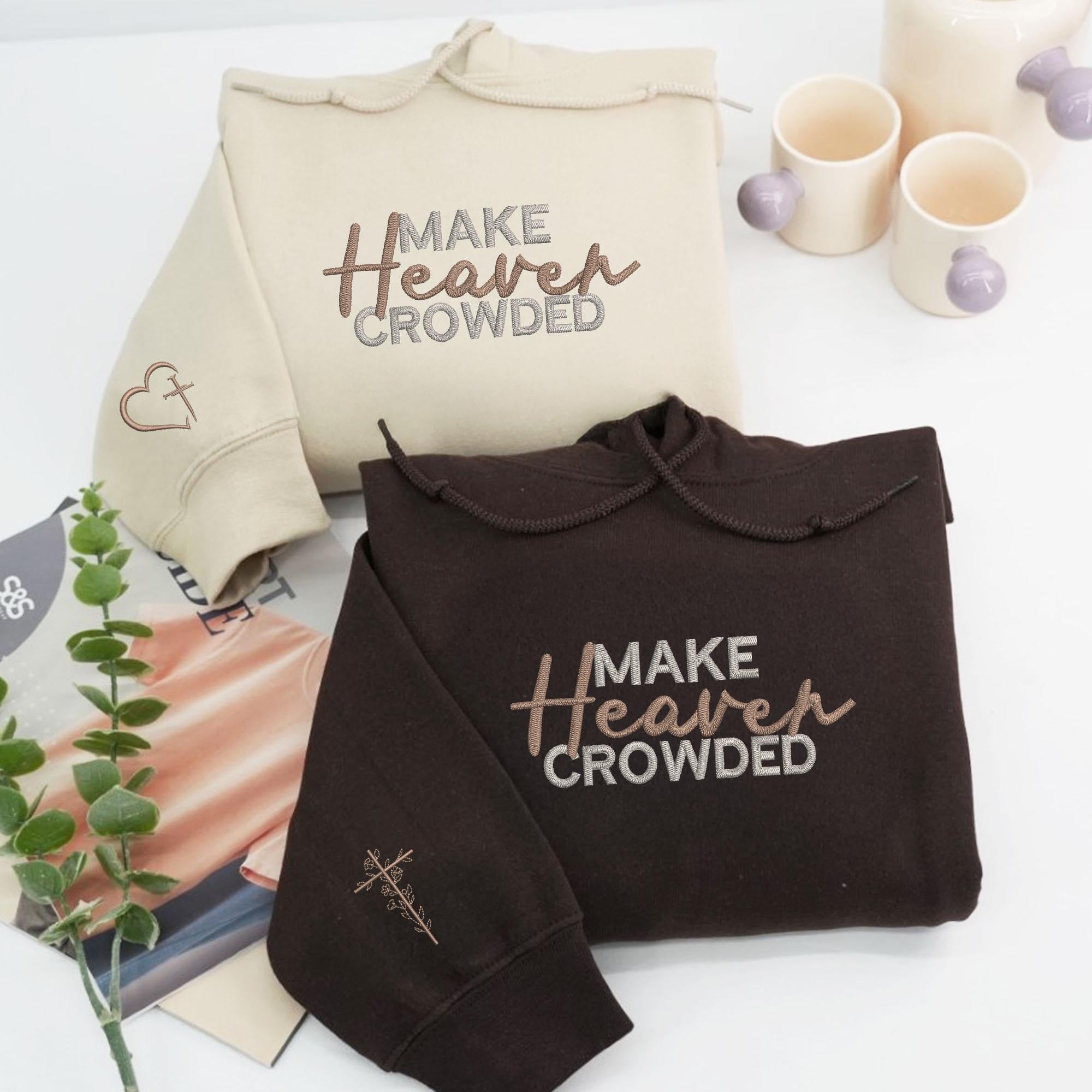 Make Heaven Crowded Embroidered Sweatshirt, Christian Embroidery Hoodie, God Is Good Outfit, Faith Clothing, Religious Family Hoodie Gifts