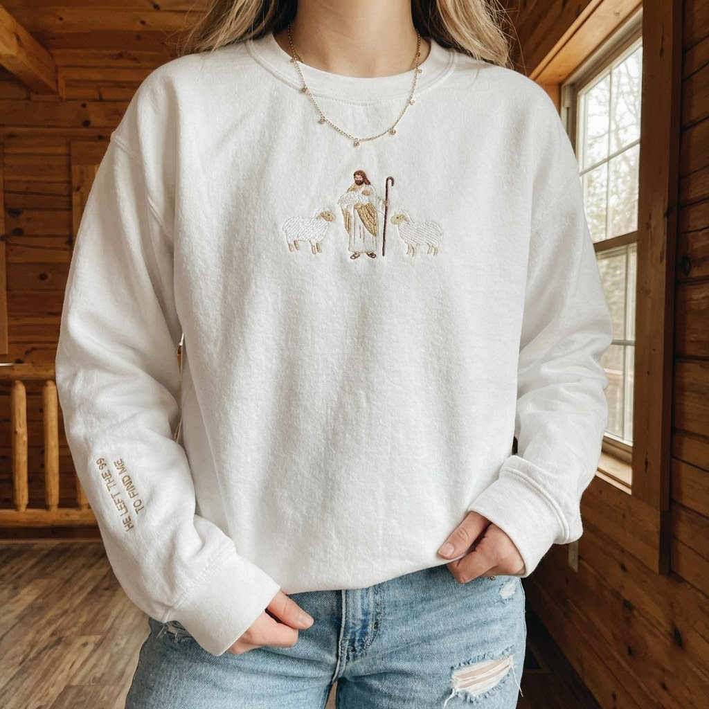Embroidered 'Lost Sheep' Sweatshirt, Jesus Leaves the 99, The Lord is My Shepherd Crewneck, Psalm 23, Christian Clothing, Bible Verse Sweatshirt, Spiritual Crewneck, Christian Gift, Embroidered Sweater