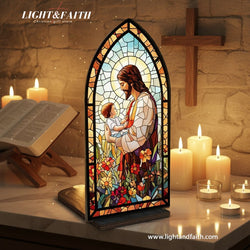 Jesus with Child Book Nook, Stained Glass Style Acrylic Decor, Christian Gift, Baptism and Baby Dedication Gift, Faith Home Decoration BNLAF11