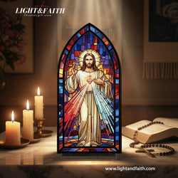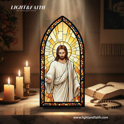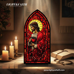Sacred Heart Jesus Stained Glass Book Nook, Christian Home Decor, Religious Gift for Prayer Corner BNLAF01
