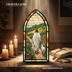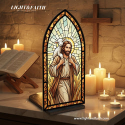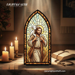 The Good Shepherd Jesus Book Nook, Stained Glass Style Acrylic Christian Decor, Religious Gift for Home & Prayer Corner BNLAF03