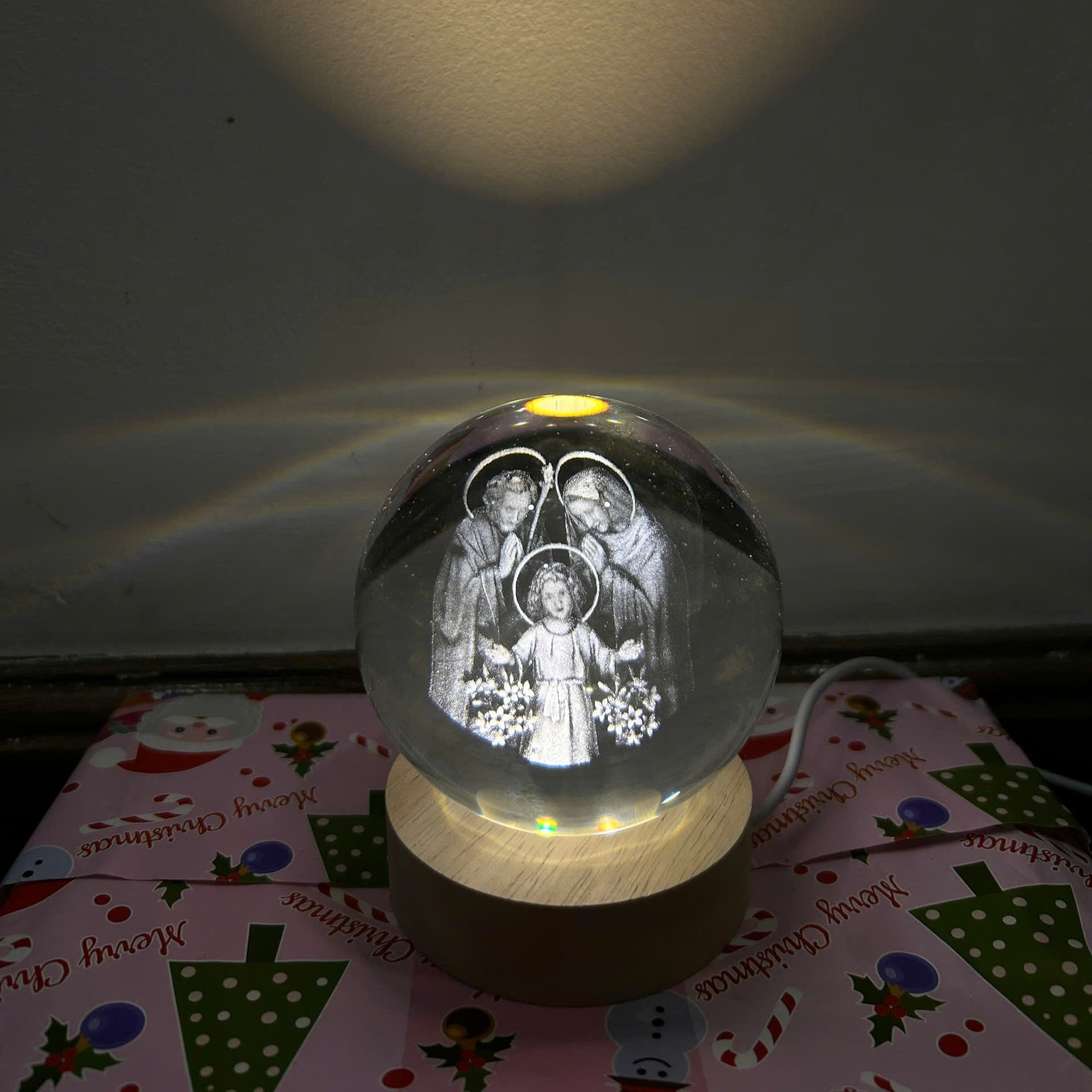 Holy Family Crystal Sphere with LED Base, A Radiant Symbol of Faith, Jesus Crystal Sphere, Gift For Christian