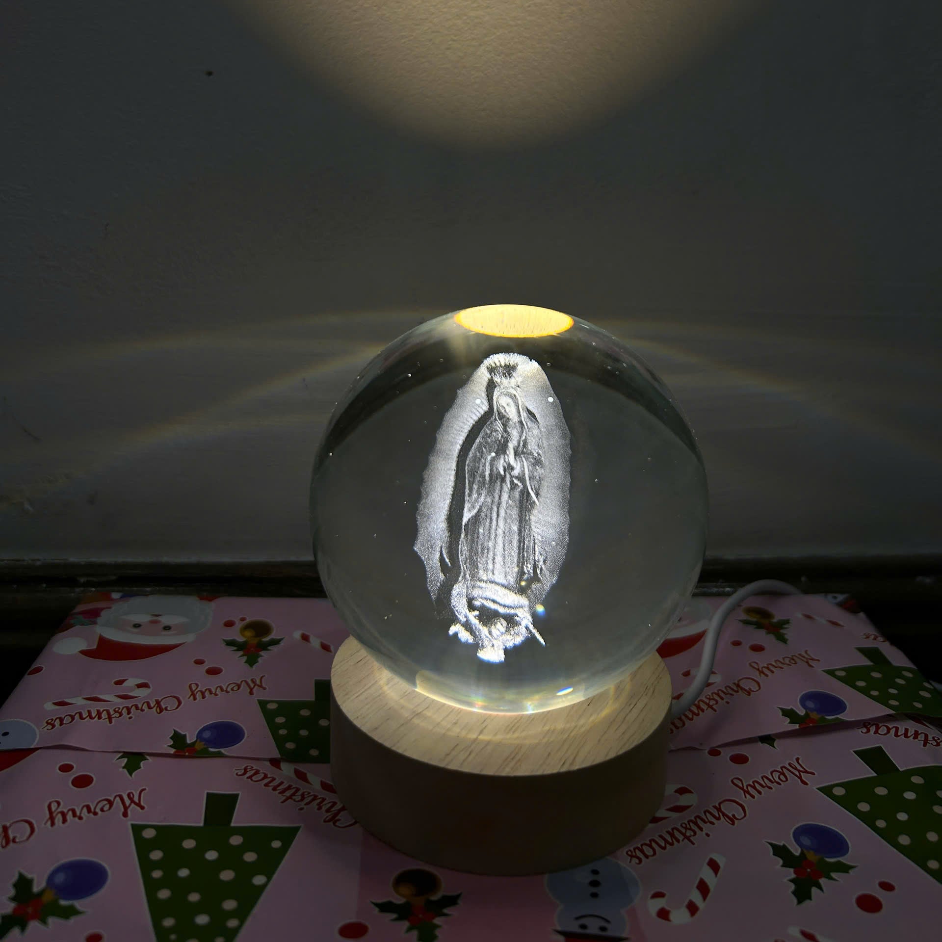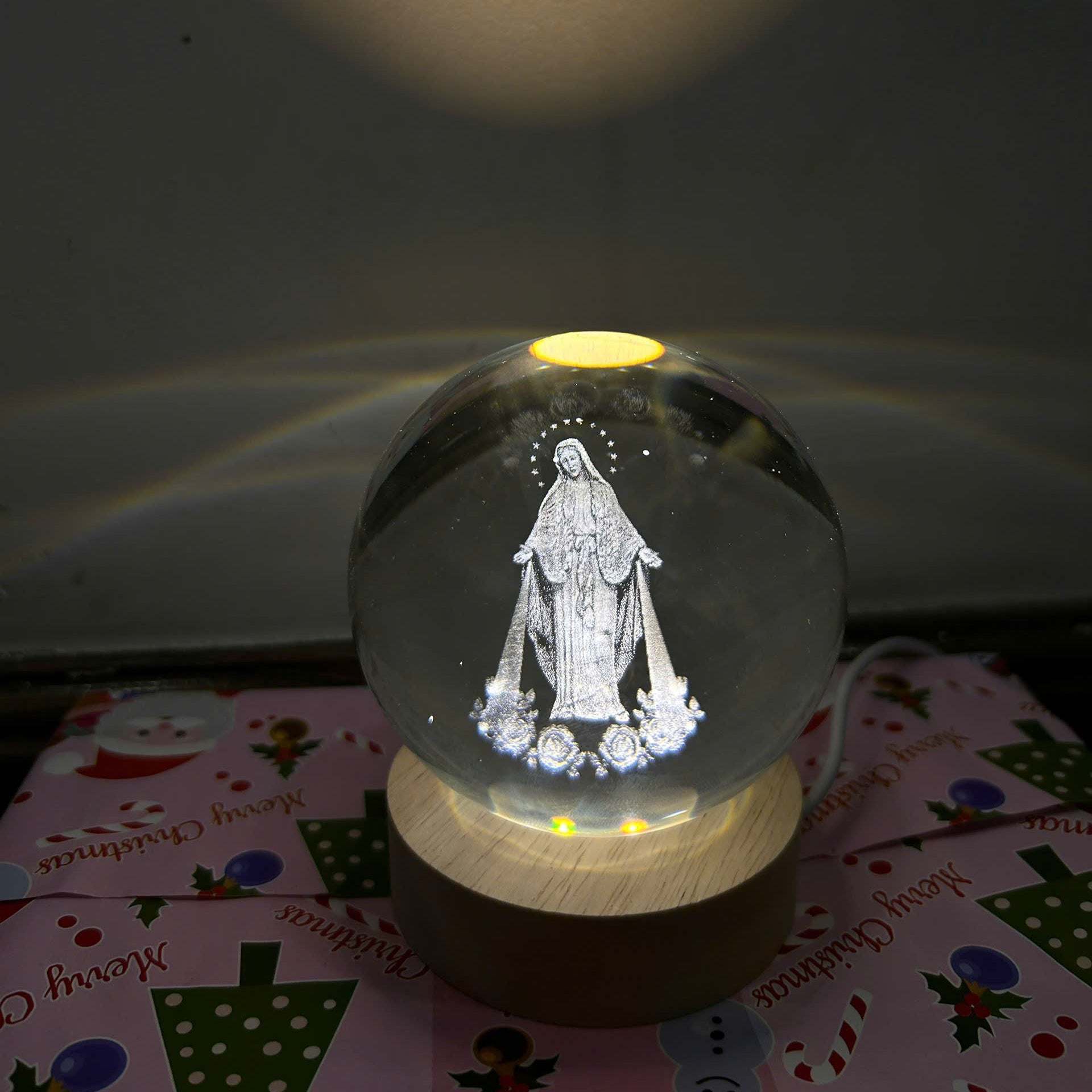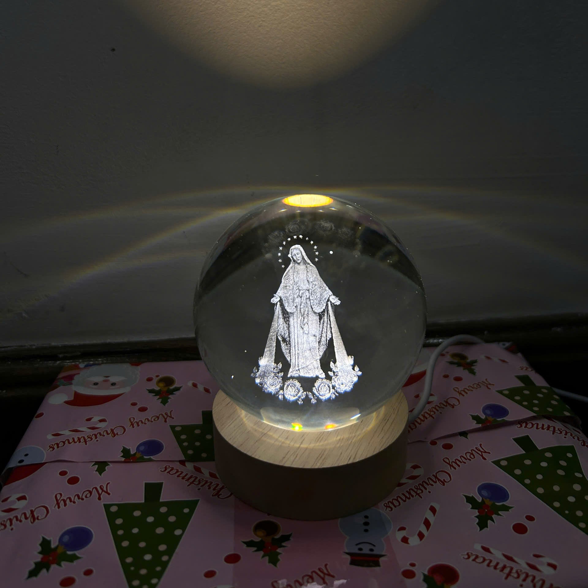 Mother Mary bless Crystal Sphere with LED Base, A Radiant Symbol of Faith, Jesus Crystal Sphere