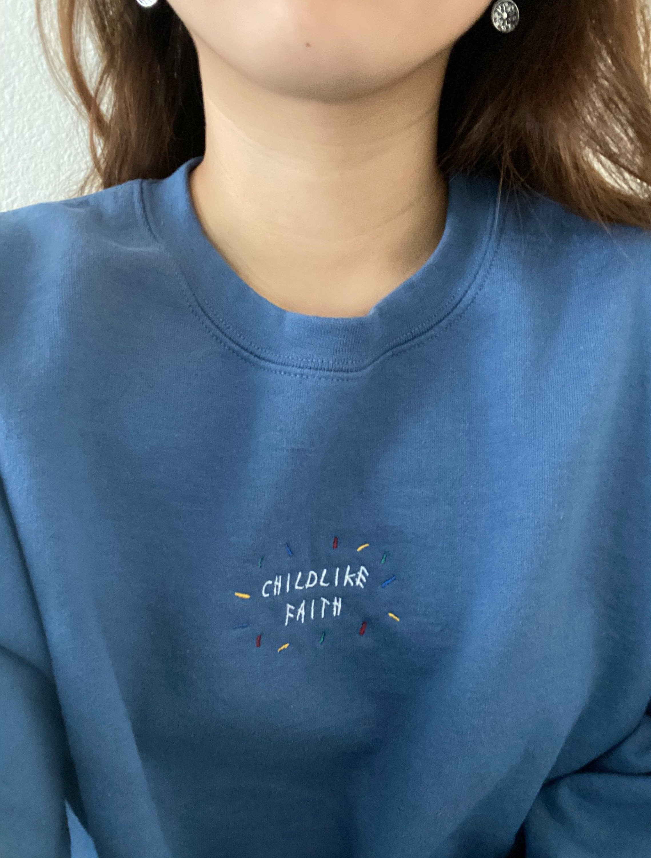 Embroidered 'Childlike Faith' Confetti Crewneck Sweatshirt, Christian Sweatshirt, Bible Sweatshirt, Aesthetic Sweatshirt, Christian Apparel