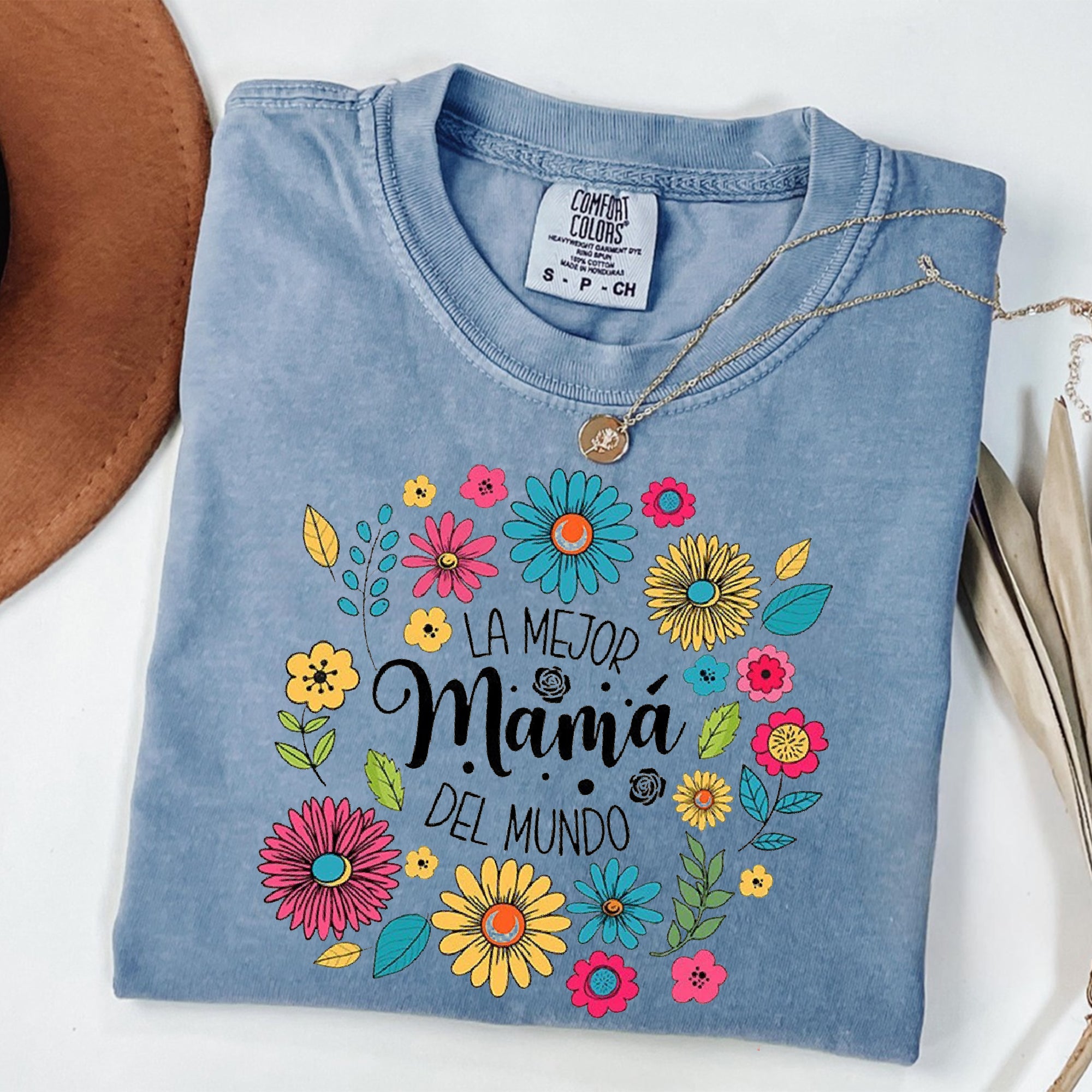 Comfort Colors Christian Mother's Day Shirt - Best Mom in the World Floral Tee - Cute Floral Design for Mother's Day Gift