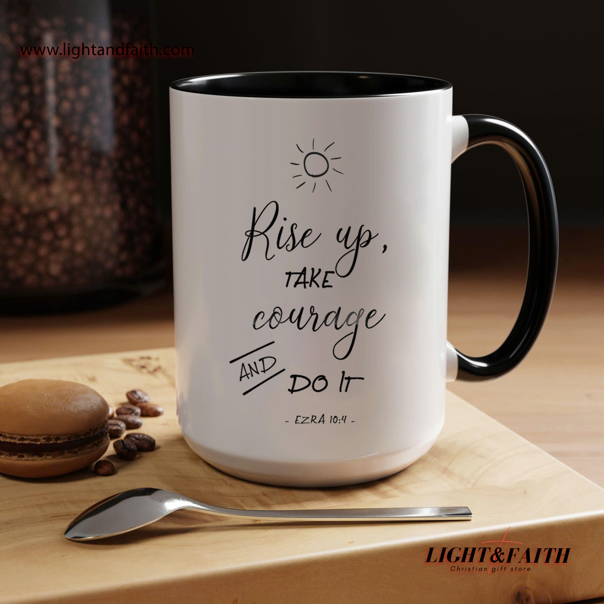 Rise Up, Take Courage & Do It Mug – Ezra 10:4 Christian Bible Verse Coffee Cup, Motivational Gift MULAF49