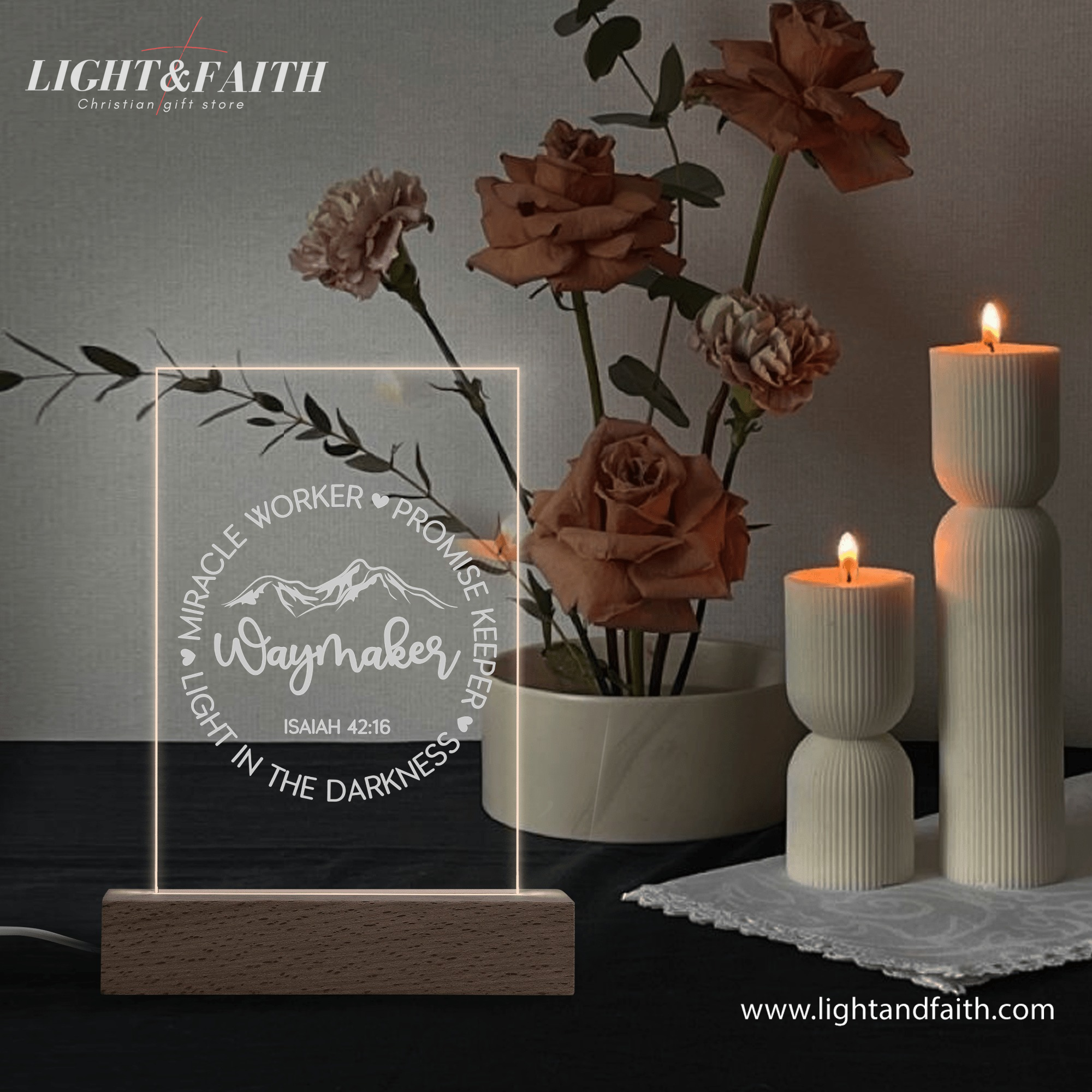 WAYMAKER LED Light, Christian Bible Verse Lamp, Inspirational Acrylic Night Light, Religious Home Decor, Faith Gift for Believers. NLLAF16