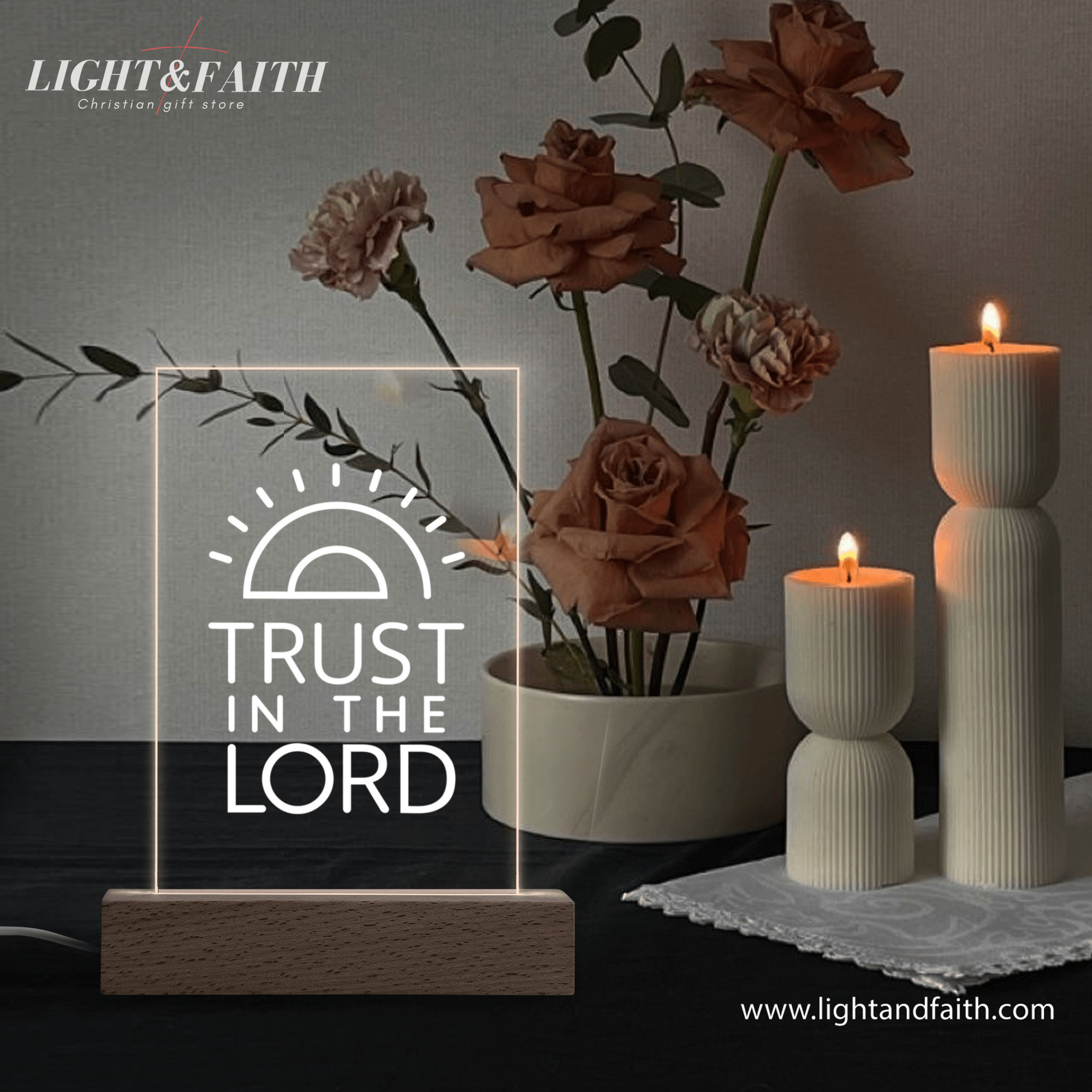 Trust In The Lord LED Light, Christian Bible Verse Lamp, Christian Home Decor, Faith Based Decor, Religious LED Light.NLLAF32