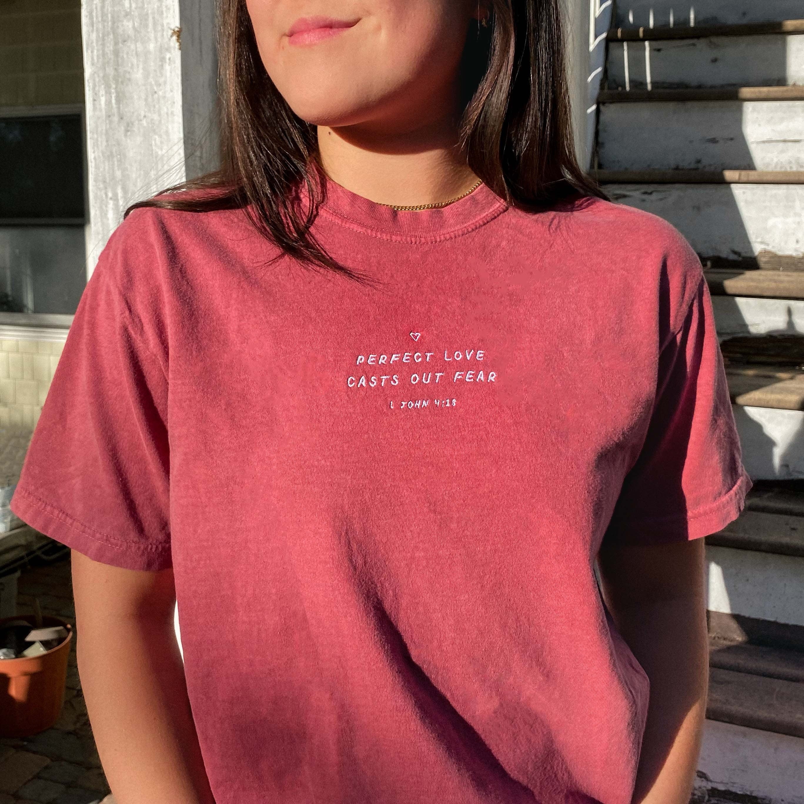 Perfect Love, Christian T-shirt Embroidered, Bible Verse Shirt, Comfort Colors