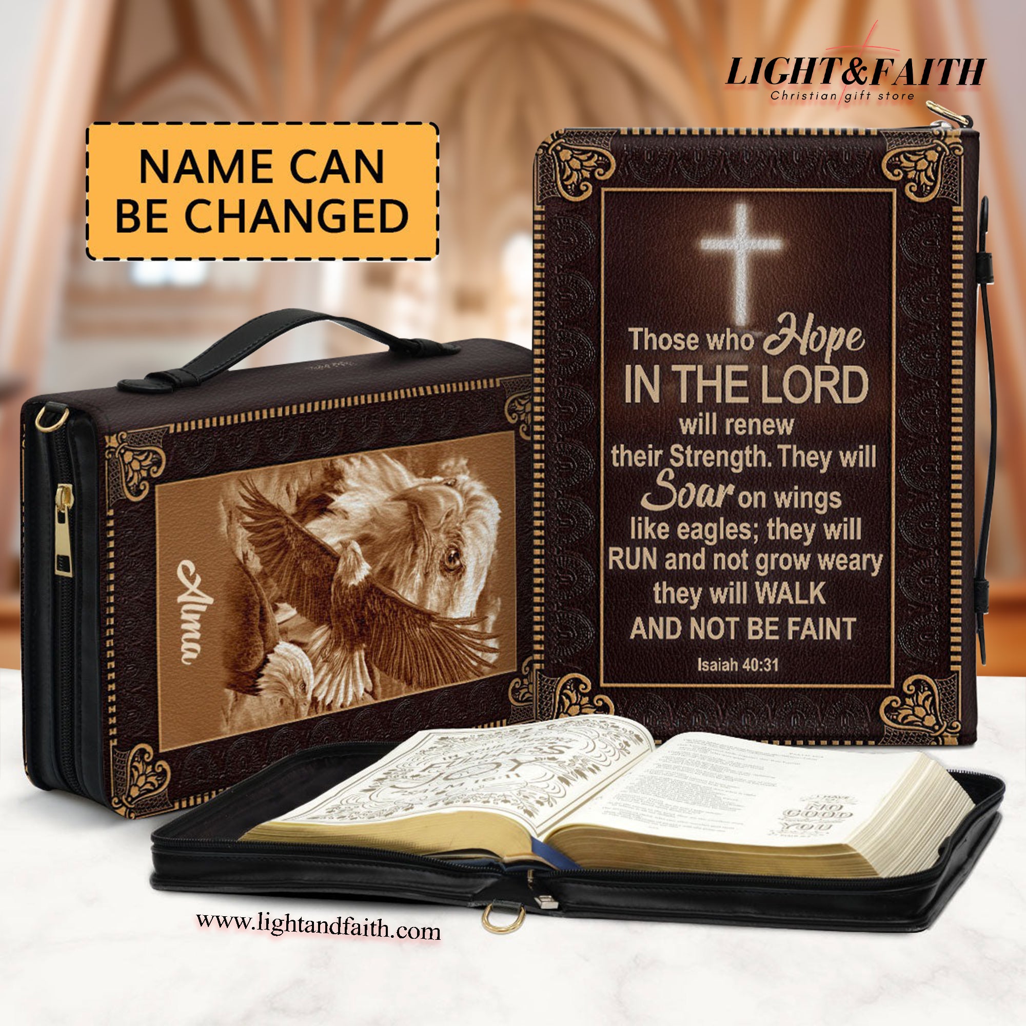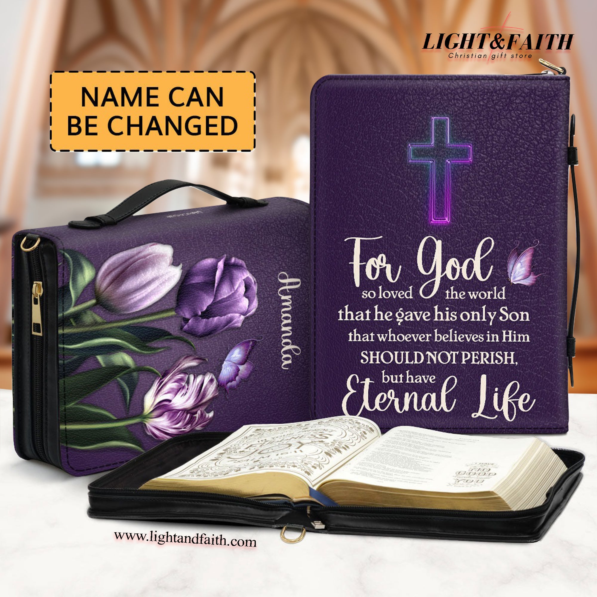 God Has An Amazing Plan For Your Life Leather Book Cover, Personalized Cross Bible Cover With Handle, Zippered Bible Carrying Case