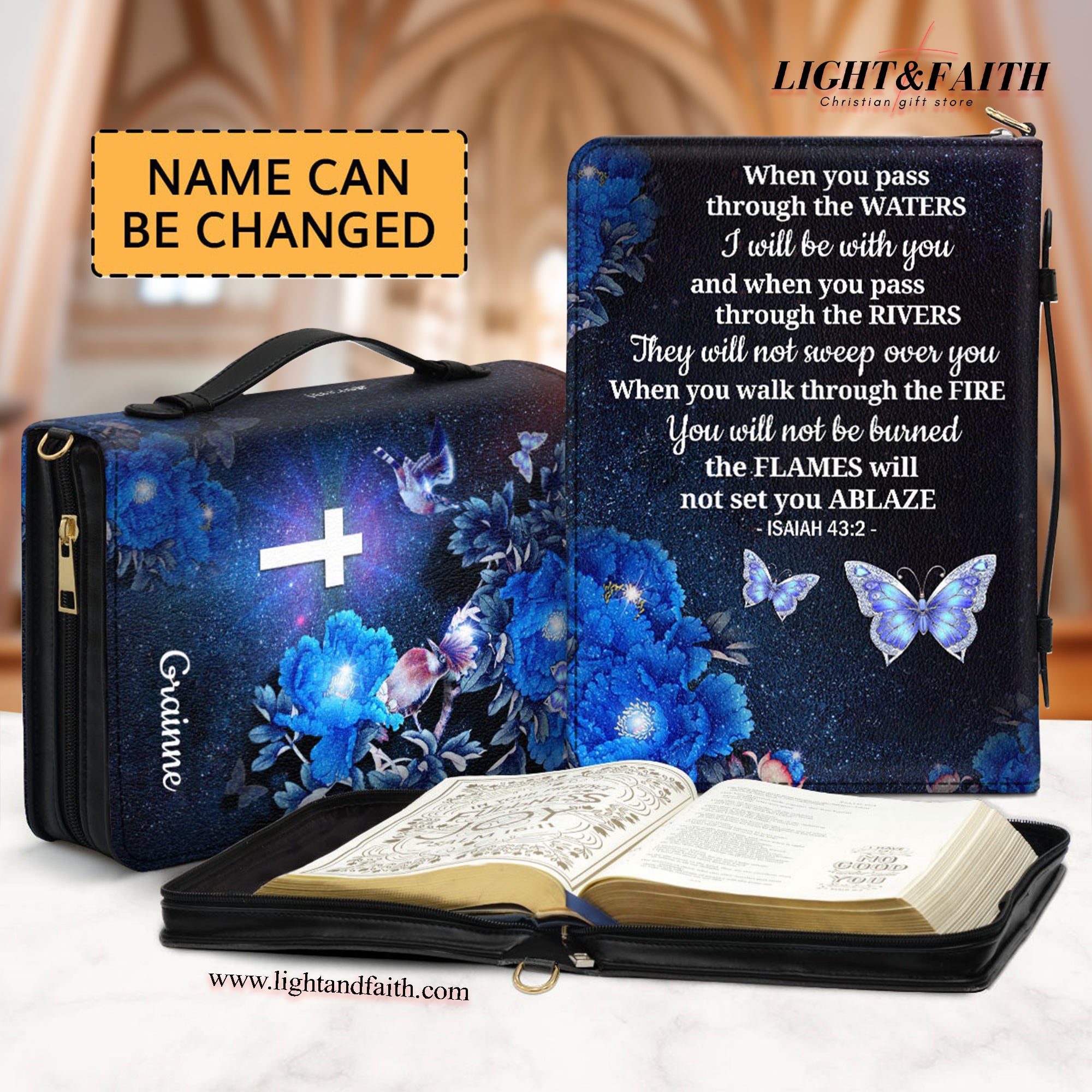 I Will Be With You , Isaiah 43:2 Leather Book Cover, Motivational Religious Gift For Christian People, Christian Gift, Bible Covers Jesus Gifts, Personalized Bible Cover With Handle