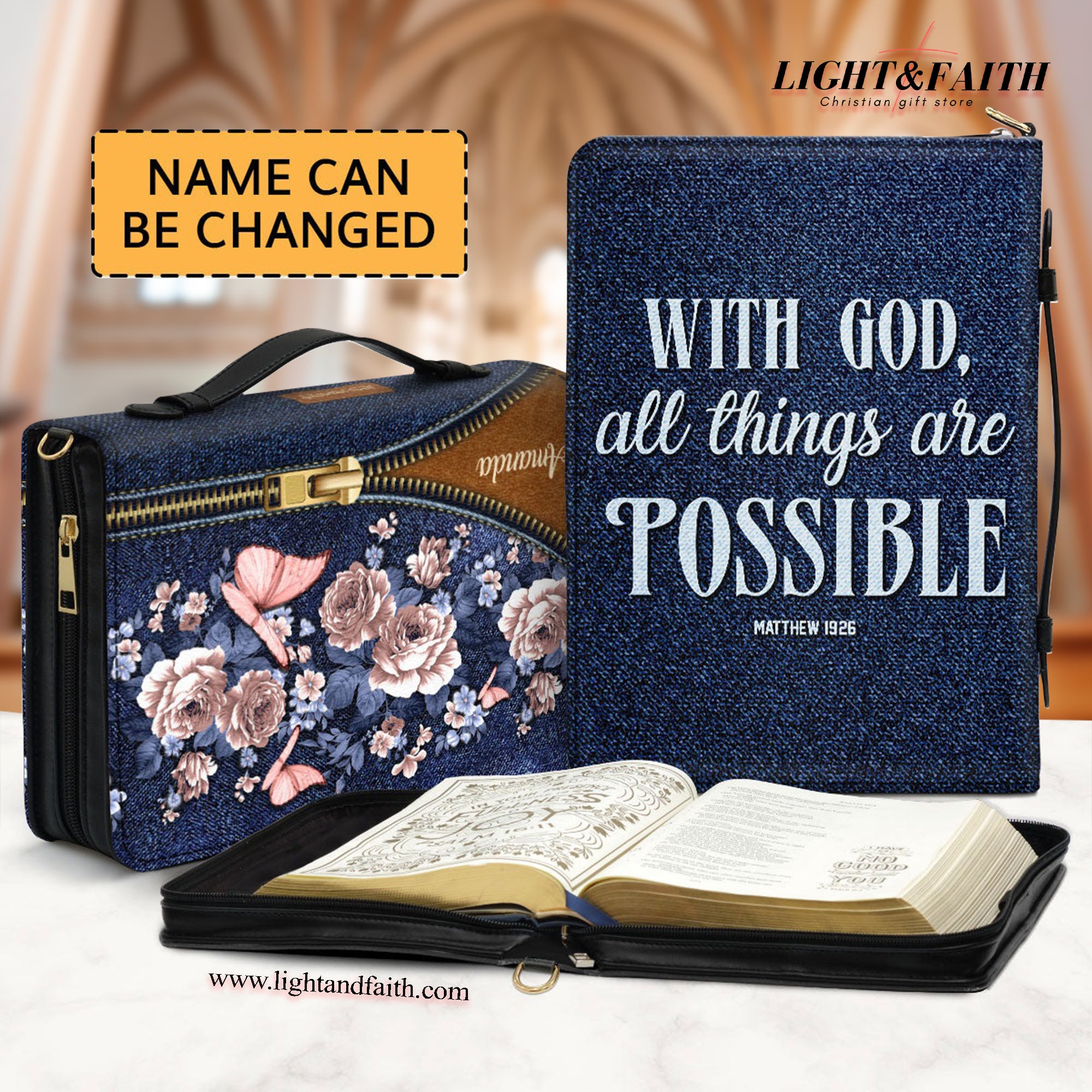 Matthew 19:26 , With God All Things Are Possible Leather Book Cover, Christ Gift For Christian Prayer, Christian Gift, Bible Covers Jesus Gifts, Zippered Leather Bible Cover With Handle