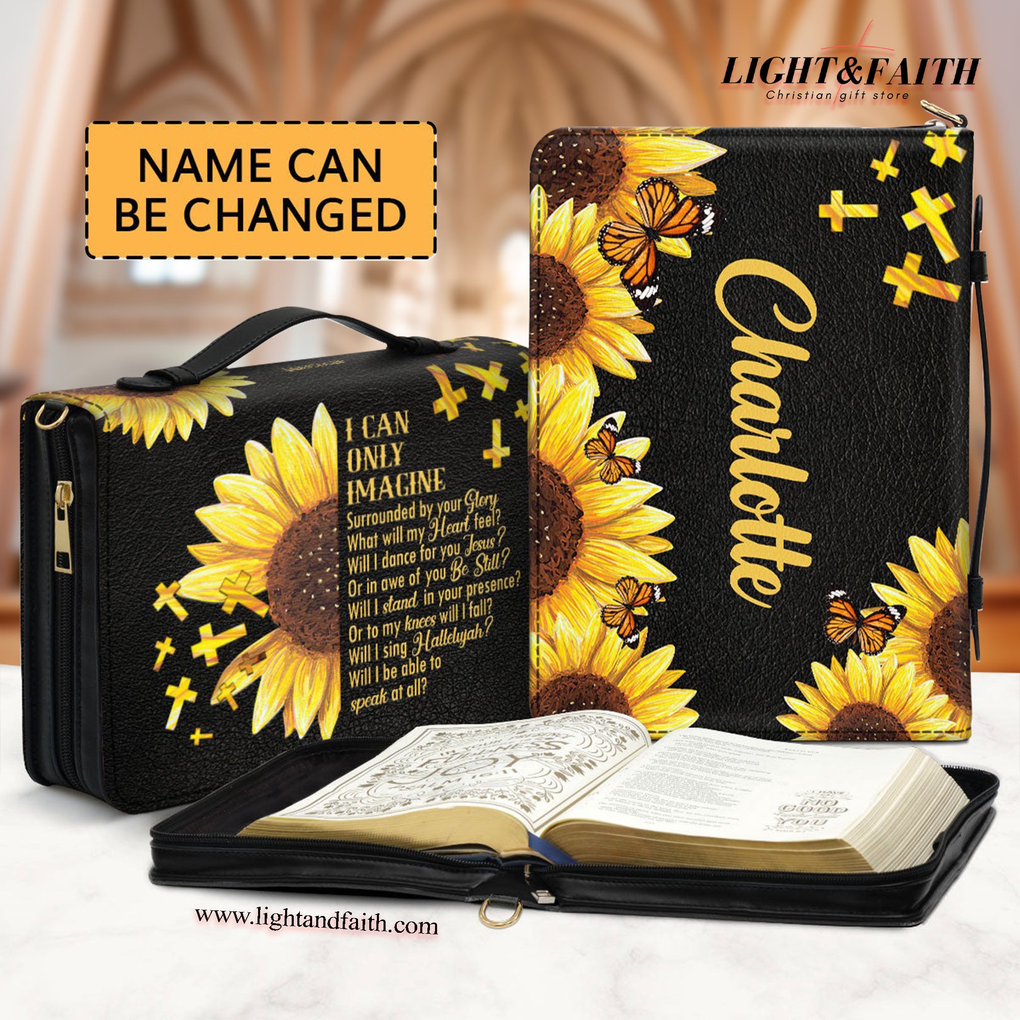 I Can Only Imagine Leather Book Cover, Personalized Stunning Sunflower Bible Cover, Religious Gift For Christians, Christian Gift, Bible Covers Jesus Gifts