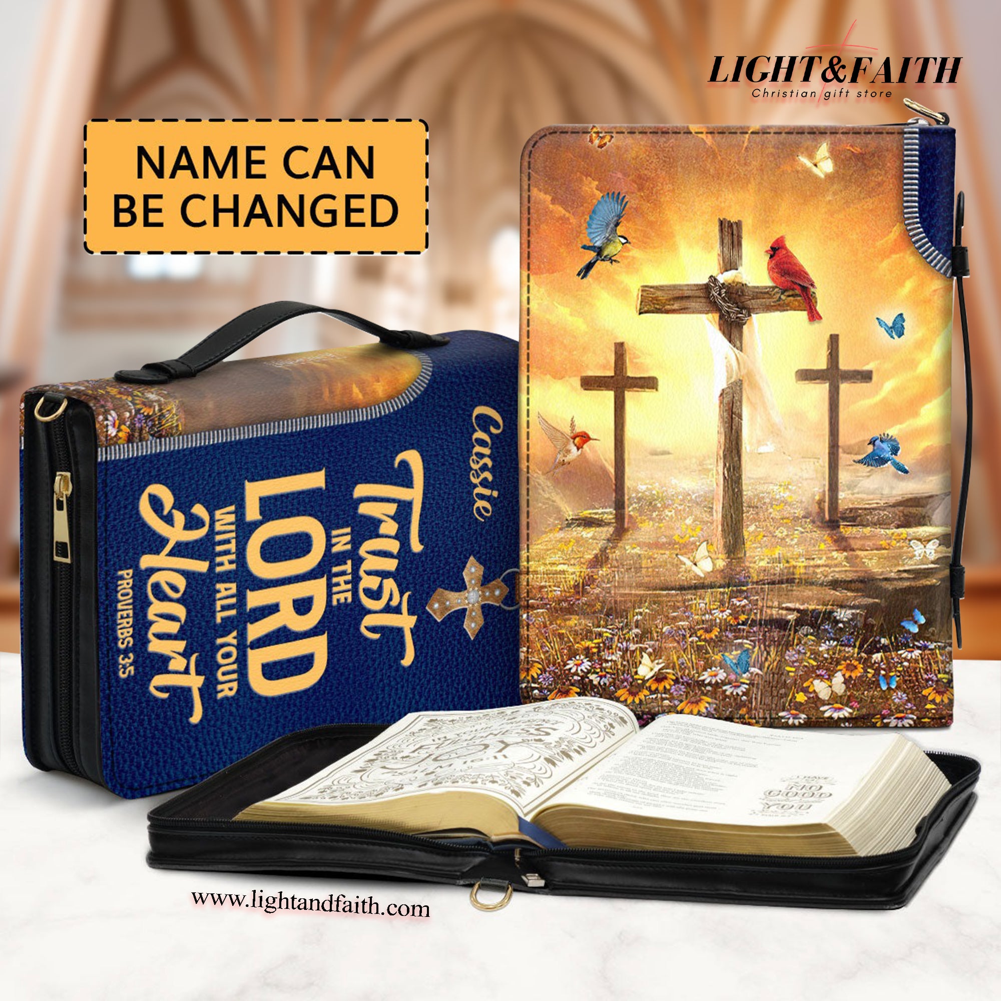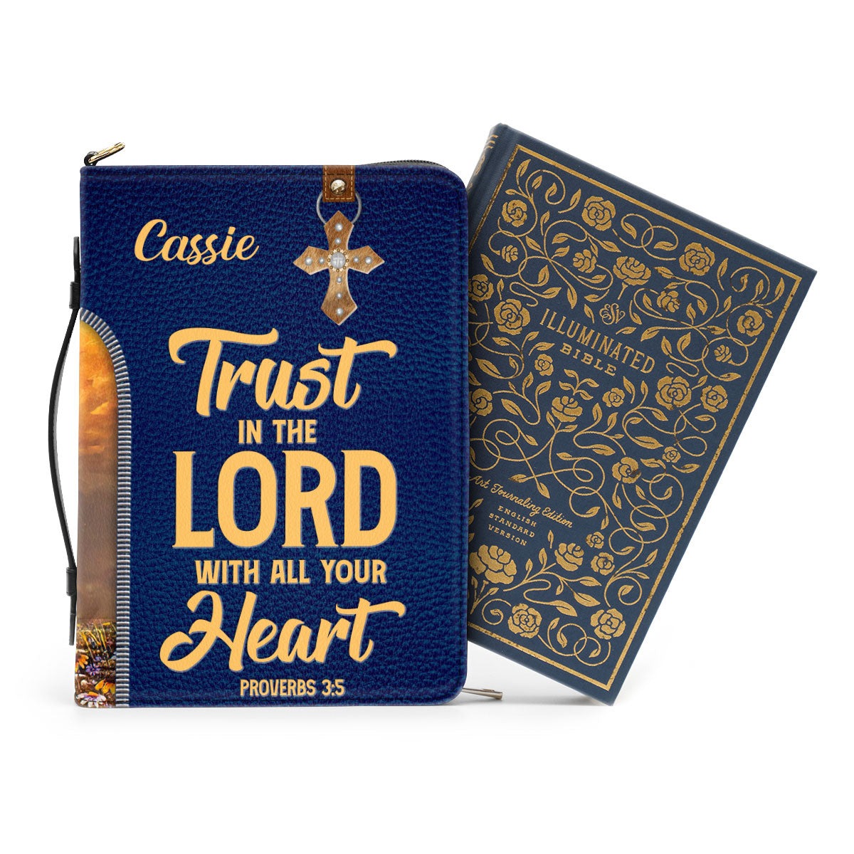 Trust In The Lord With All Your Heart - Proverbs 3:5 Leather Book Cover, Personalized Zippered Bible Cover, Christian Gift, Bible Covers Jesus Gifts