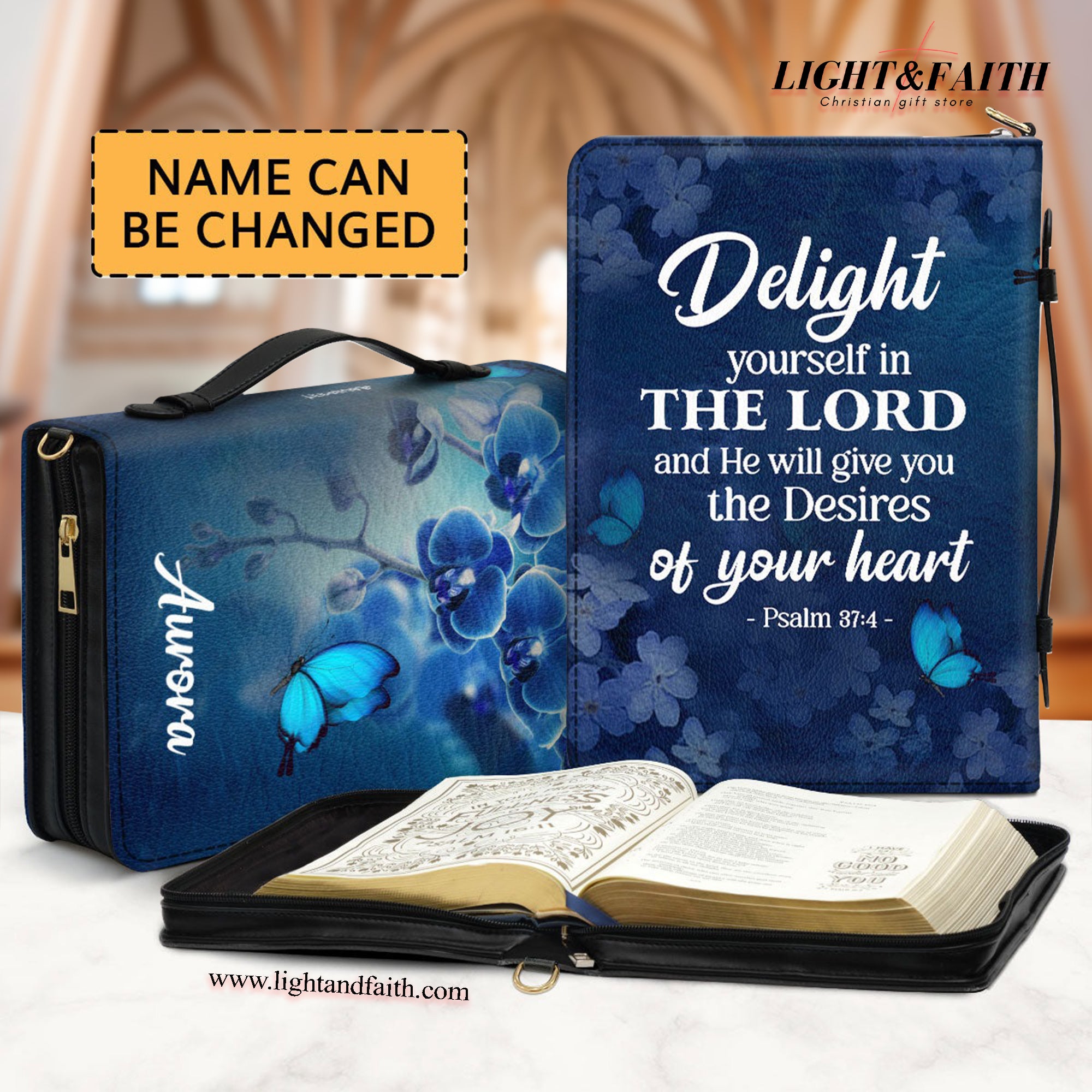 Psalm 37:4 - Blue Orchids And Lilac Leather Book Cover, Special Personalized Bible Cover, Delight Yourself In The Lord, Christian Gift, Bible Covers Jesus Gifts