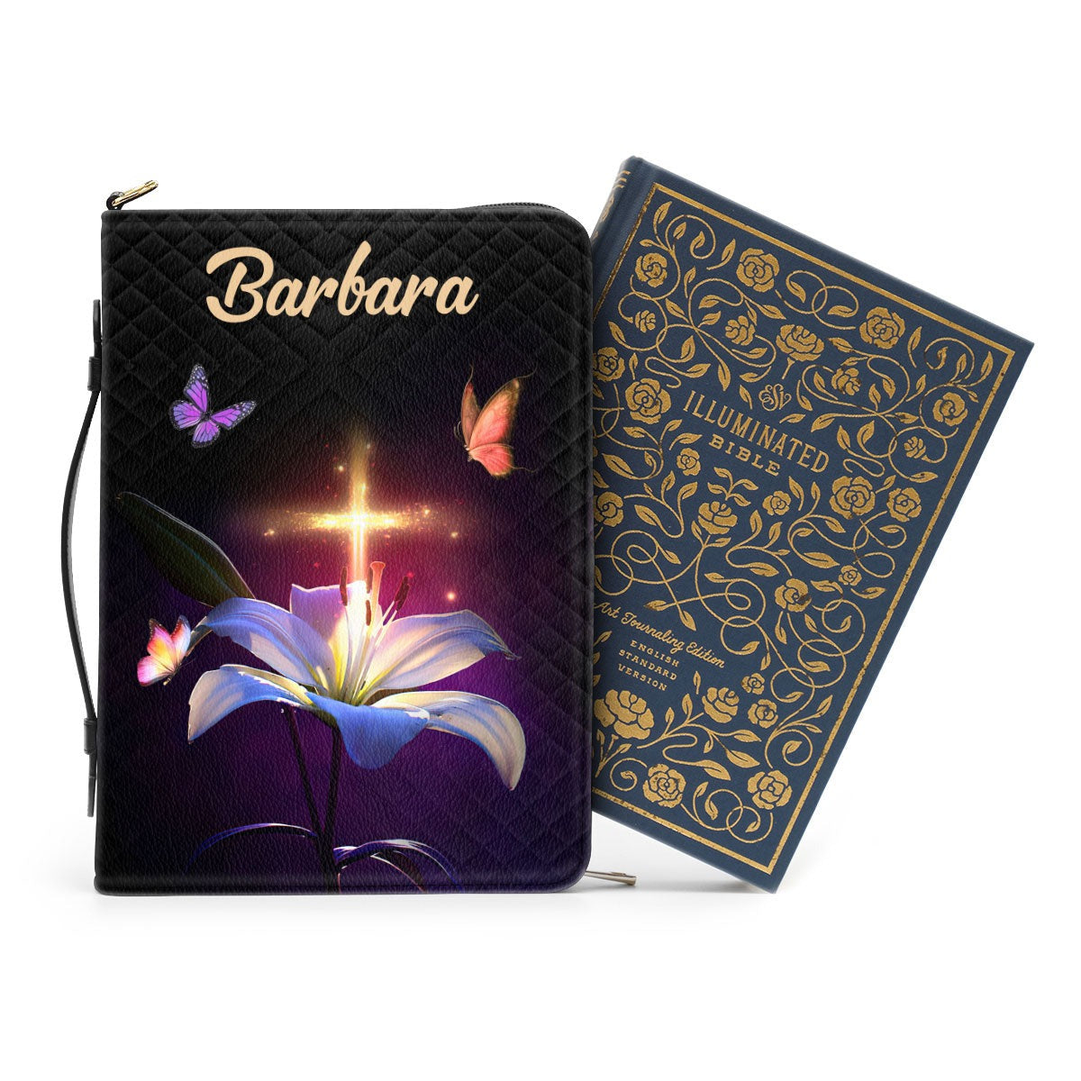 Psalm 46:10 - Be Still And Know That I Am God, Lily And Cross, Personalized Zippered Bible Cover, Christian Gift, Bible Covers Jesus Gifts