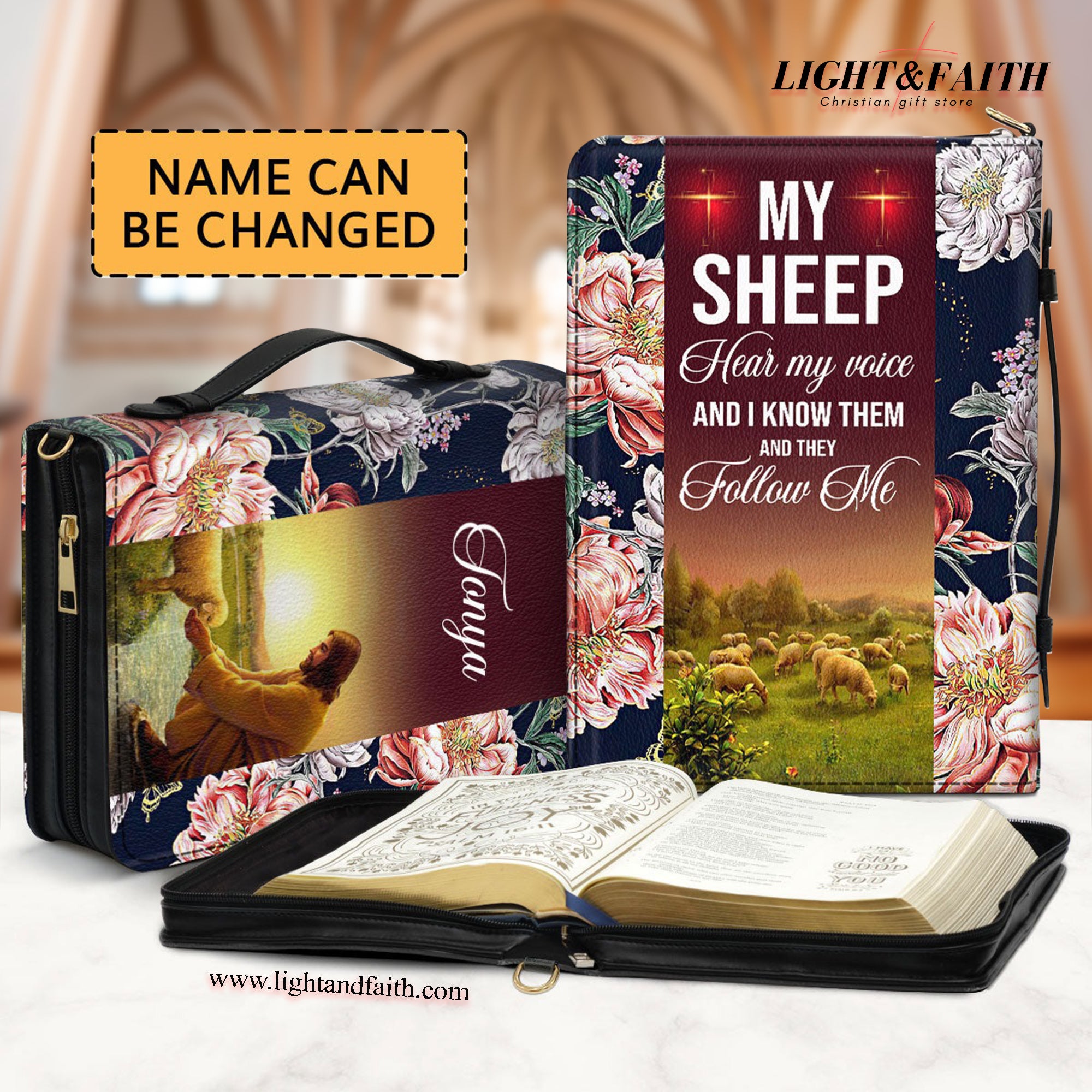 Jesus And Lamb, John 10:27 - My Sheep Hear My Voice Leather Book Cover, Personalized Bible Cover, Christian Gift, Bible Covers Jesus Gifts