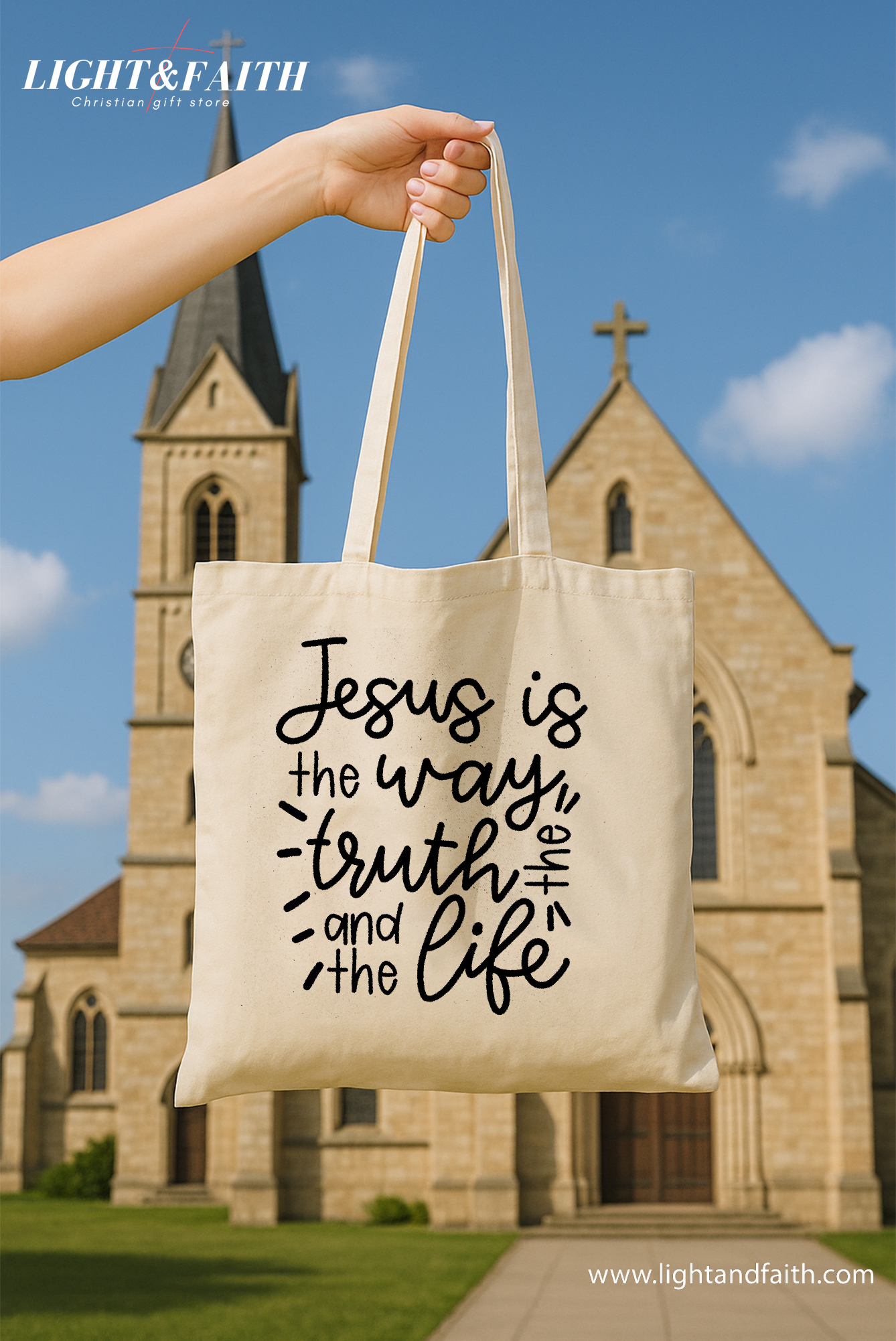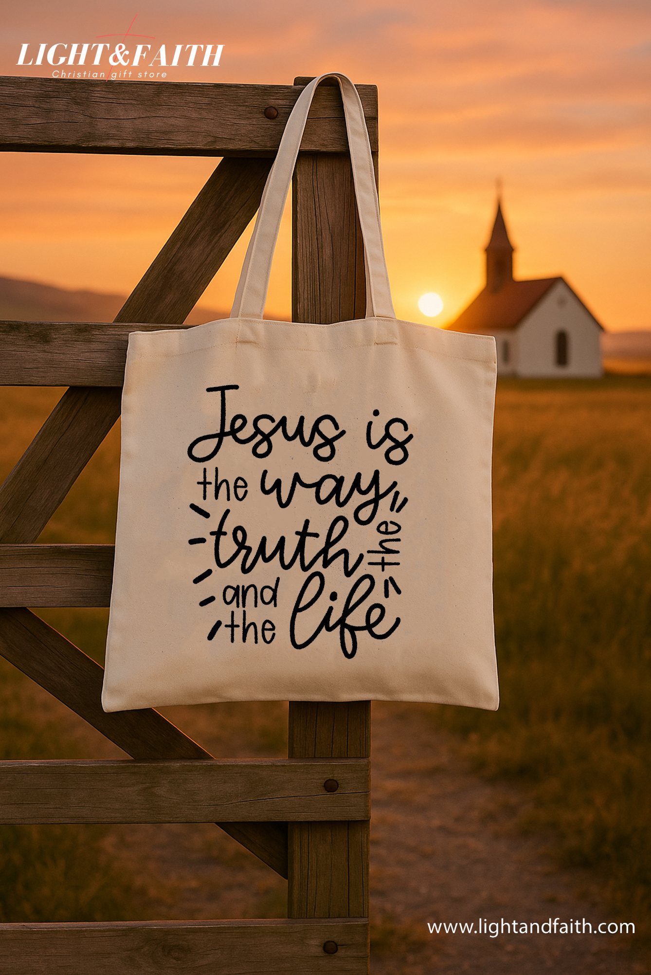 Jesus is the Way Canvas Tote Bag – Christian Bible Verse Tote – Bible Study Bag – Gift for Christian Girl – Religious Accessories – Faith-Based Gift for Her TBLAF13