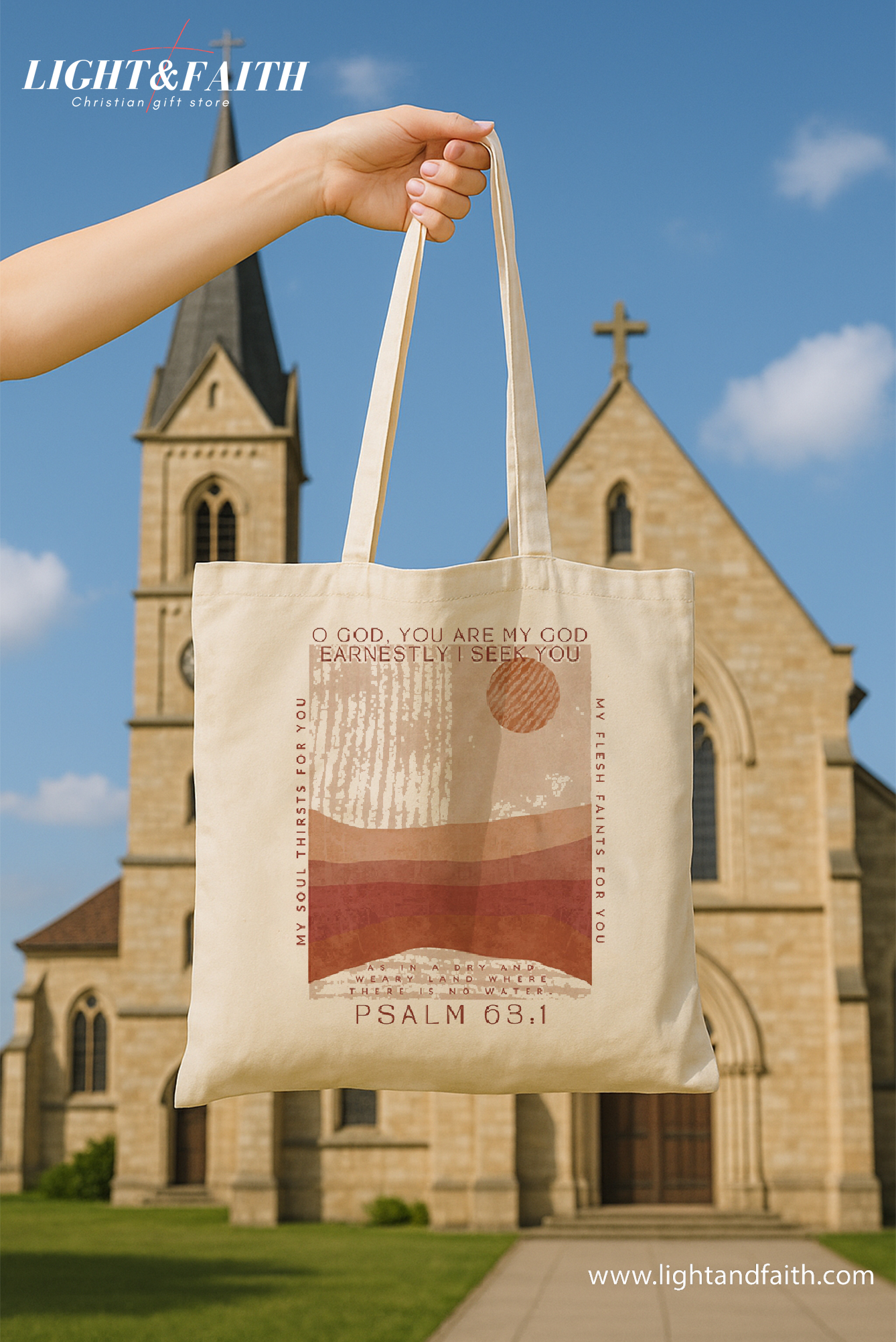 Psalms Bible Tote Bag – Christian Canvas Bag for Church & Bible Study – Reusable Boho Desert Tote – Gift for Christian Woman – Faith-Based Accessories TBLAF17