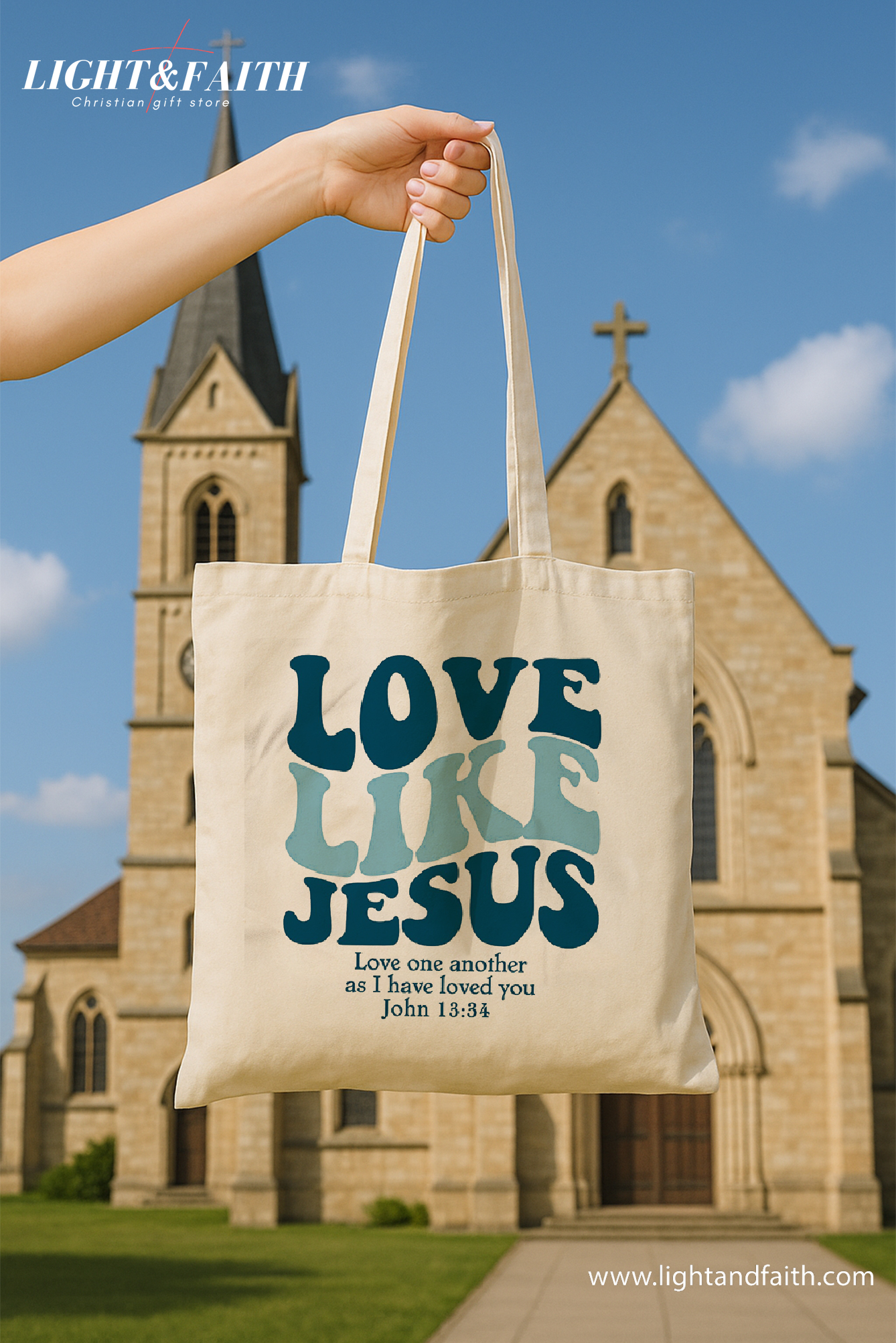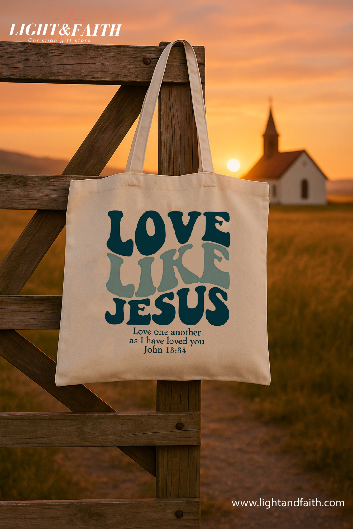 Love Like Jesus Christian Tote Bag – Canvas Tote – Faith-Based Gift – Trendy Aesthetic Tote – Cute Christian Bag – Religious Accessories TBLAF19