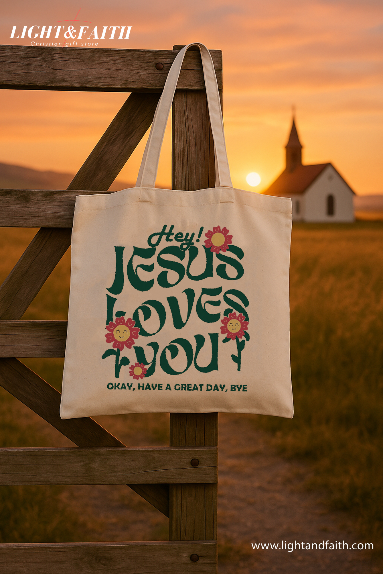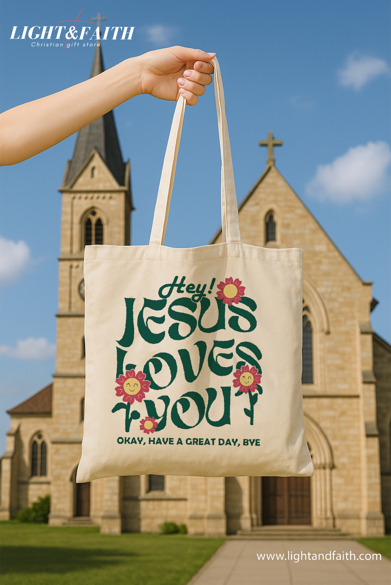 Jesus Loves You Bible Verse Tote Bag, Faith-Based Church Tote, Y2K Aesthetic Christian Bag, Catholic Religious Gift, Trendy Christian Tote TBLAF02