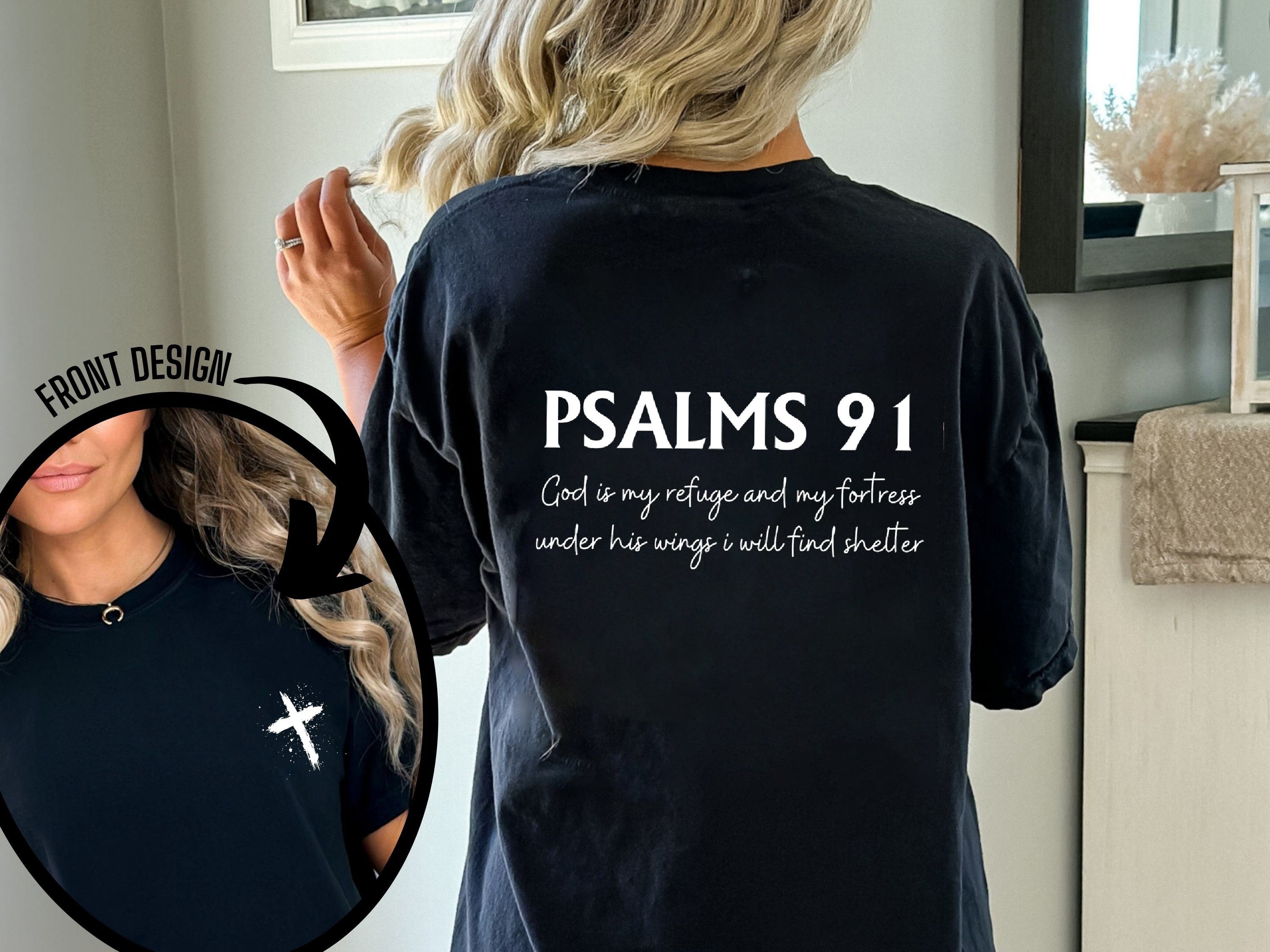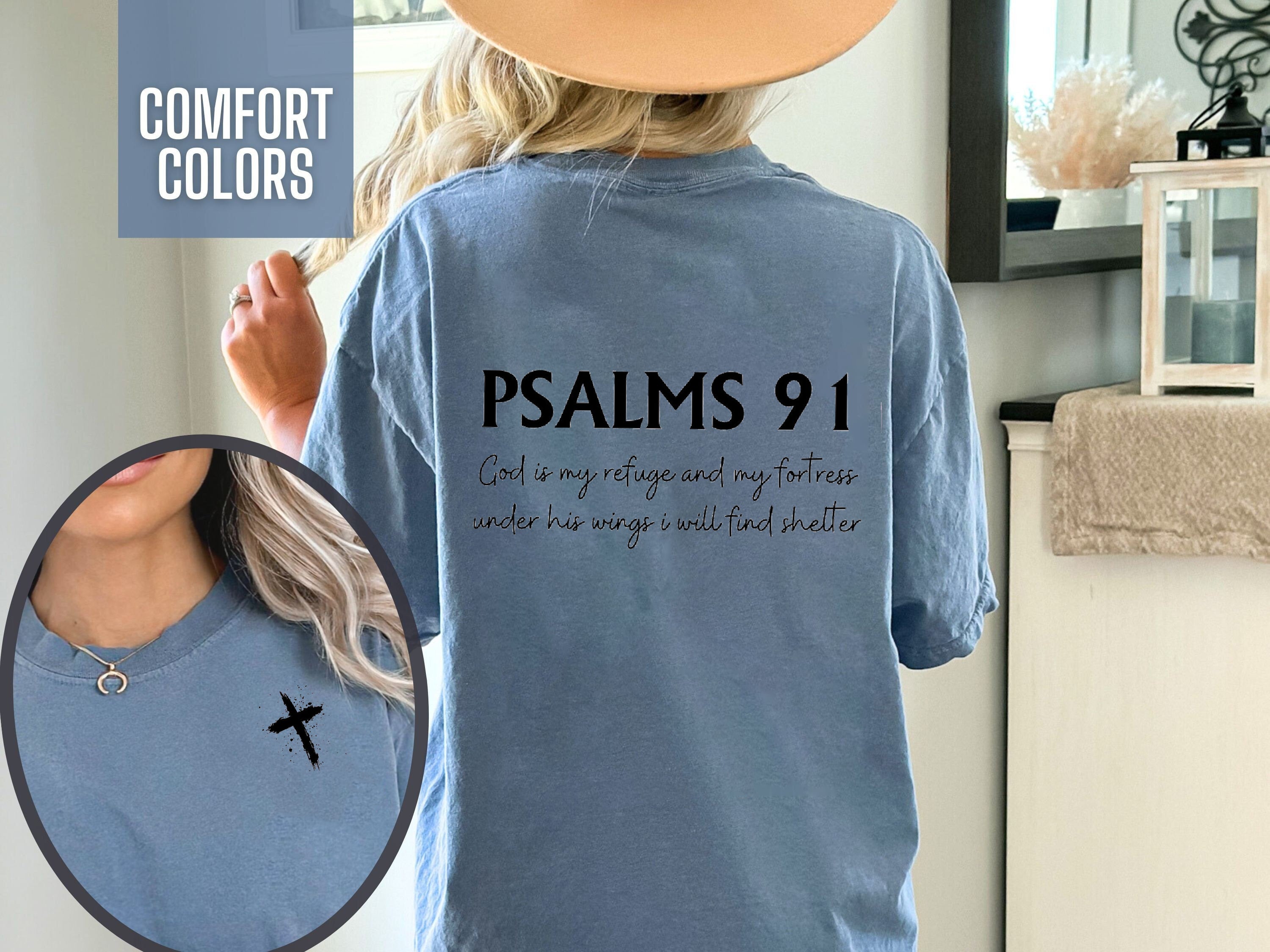 Psalm 91 Comfort Colors® T Shirt, Bible Verse T-Shirt, Christian Shirt, Women's Religious Shirt, Faith Based Shirt, Gift for Christian, Jesus Shirt