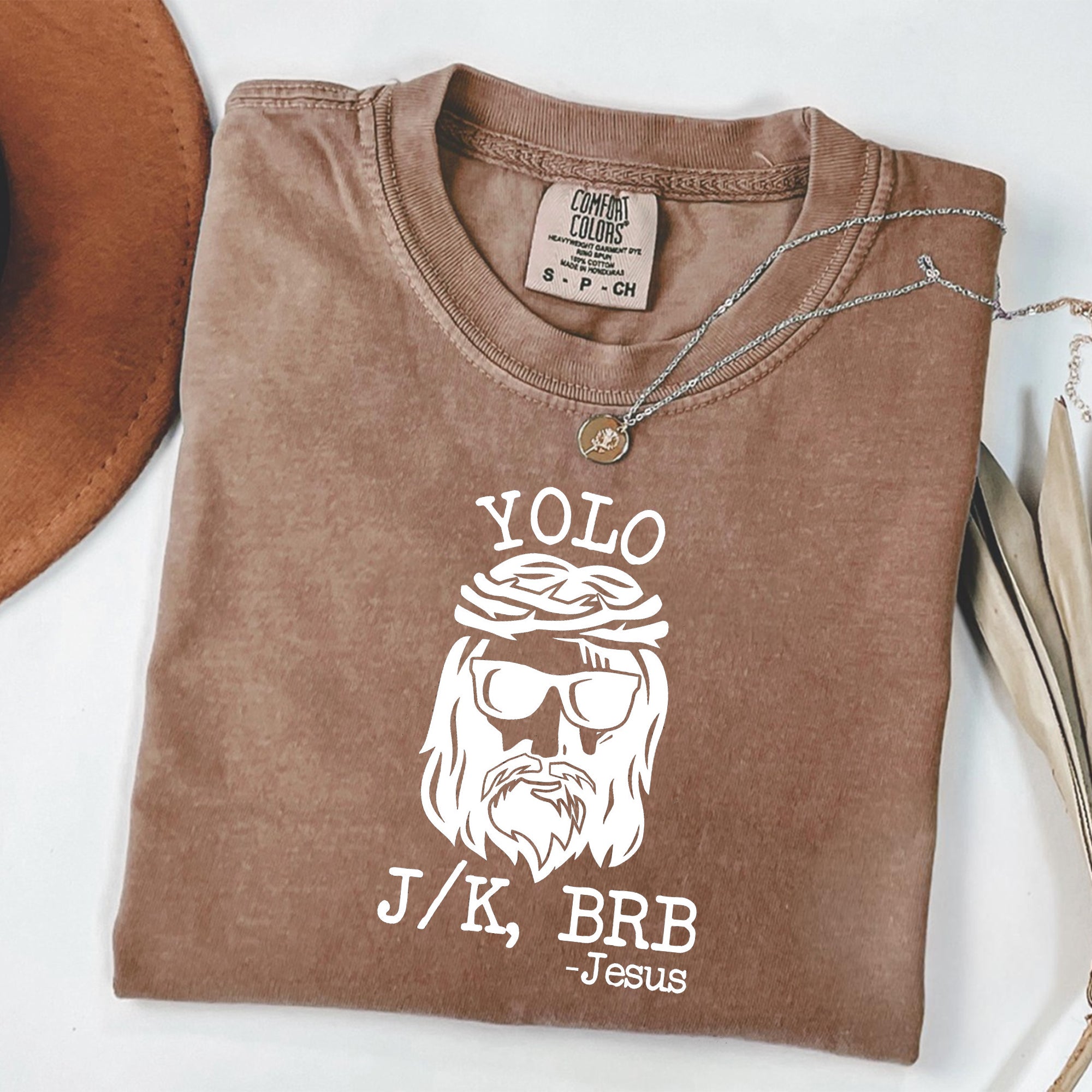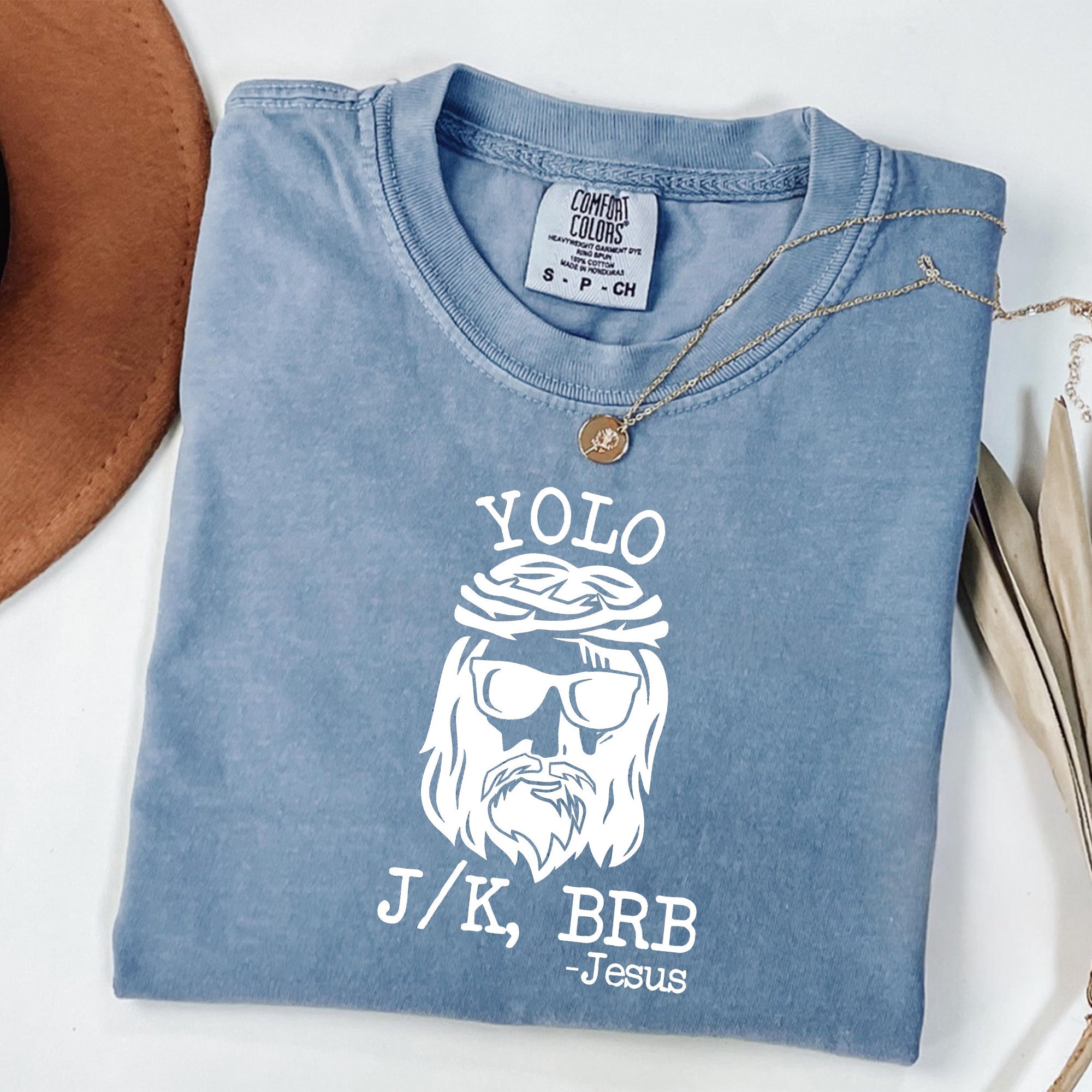 YOLO JESUS Comfort Colors Shirt, Easter T-Shirt, Women's Christian Tee, Funny Jesus J/K BRB Shirt, Humorous Easter Apparel, Faith-Based Gift