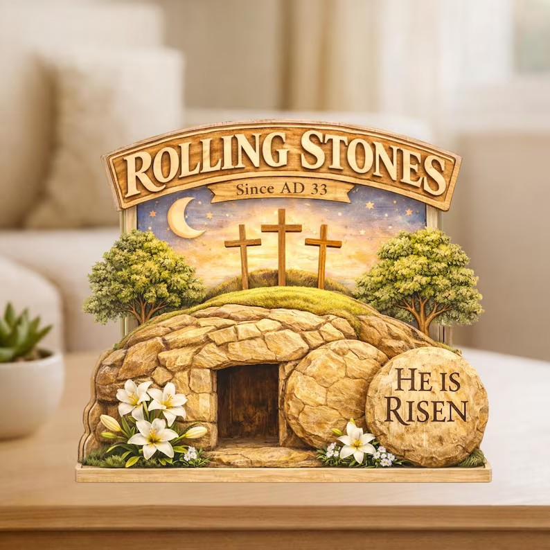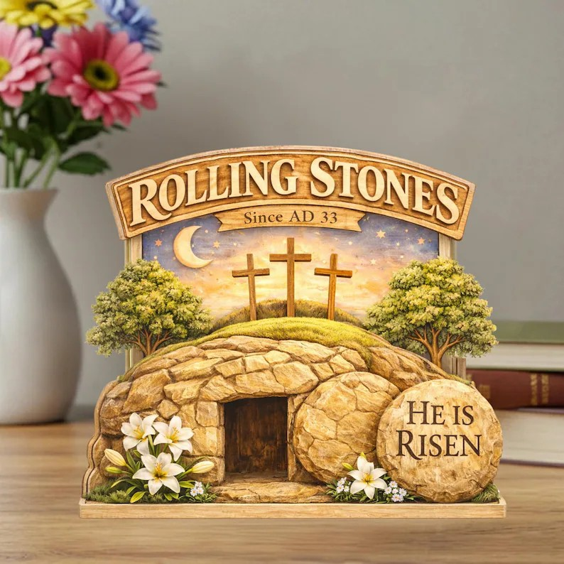Personalized He Is Risen Easter Sign, Empty Tomb Resurrection Scene, Custom Christian Wooden Decor, Religious Home Gift
