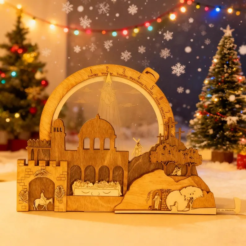 Holy Week Easter Countdown Calendar, Wooden Resurrection Scene, Christian Easter Decor, Laser Cut Religious Table Display