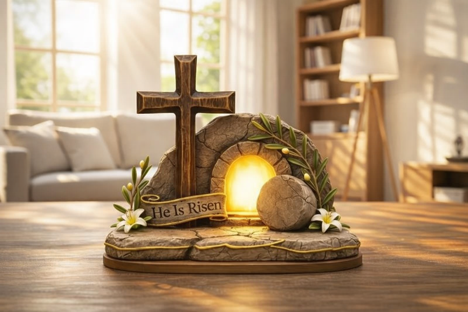 He Is Risen Easter Sign, Resurrection Cross Scene, Biblical Easter Display, Christian Home Accent