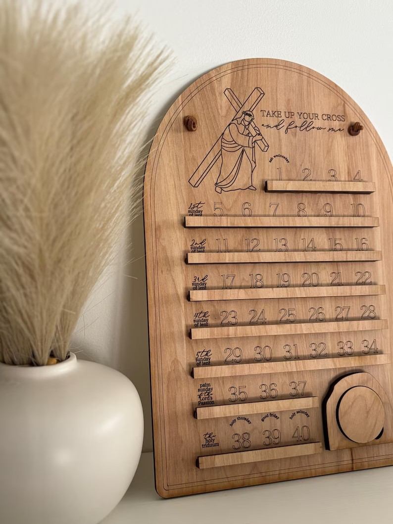 Catholic Lent Calendar, Easter Countdown Decor, Holy Week Prayer Display, Christian Tabletop Keepsake, Faith Gift