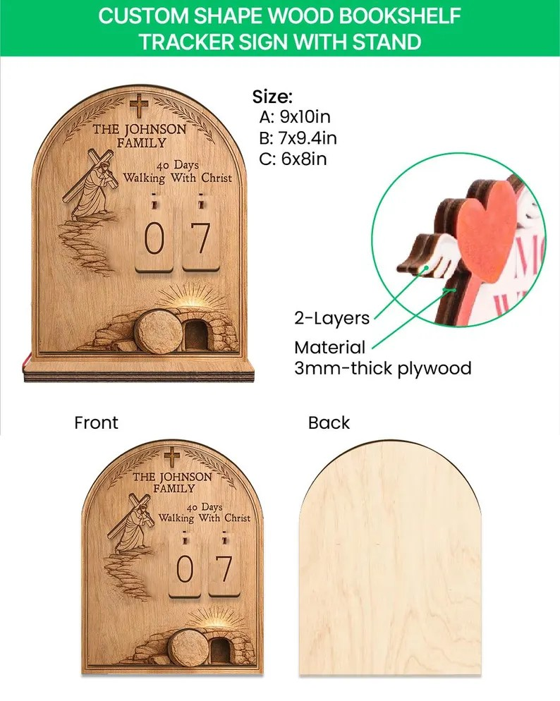 Personalized Catholic Lent Countdown Sign, 40 Days Walking With Christ, Family Easter Religious Table Decor, Christian Home Gift