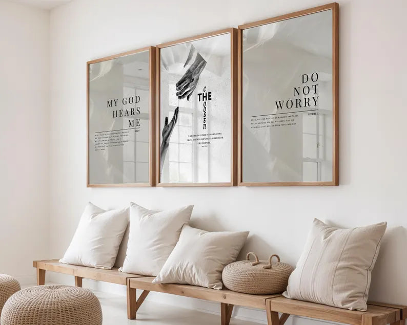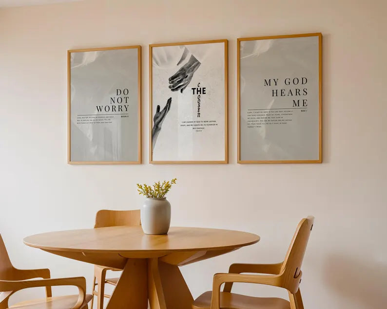 Set of 3 Inspirational Christian Wall Art Prints featuring Faith-Based Quotes for Your Home Decor