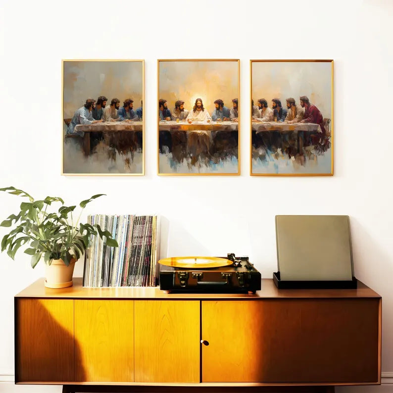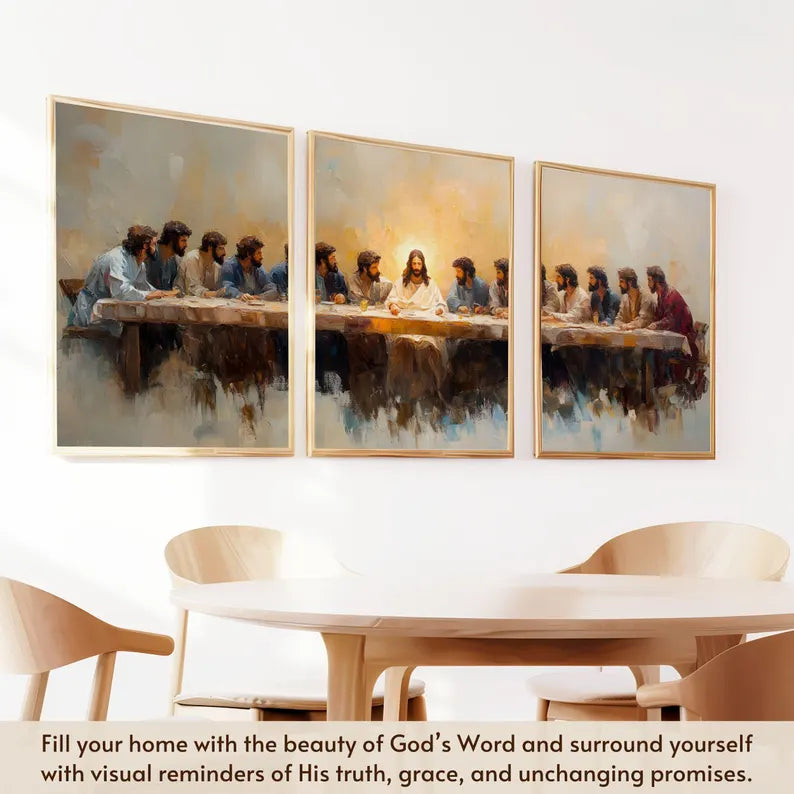 Set of 3 Last Supper Christian Wall Art Prints Inspirational Jesus and Disciples Artwork for Home Decor