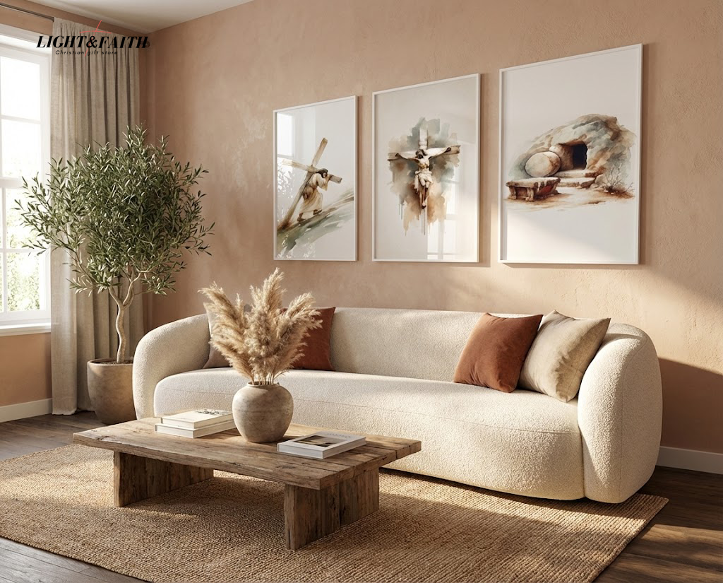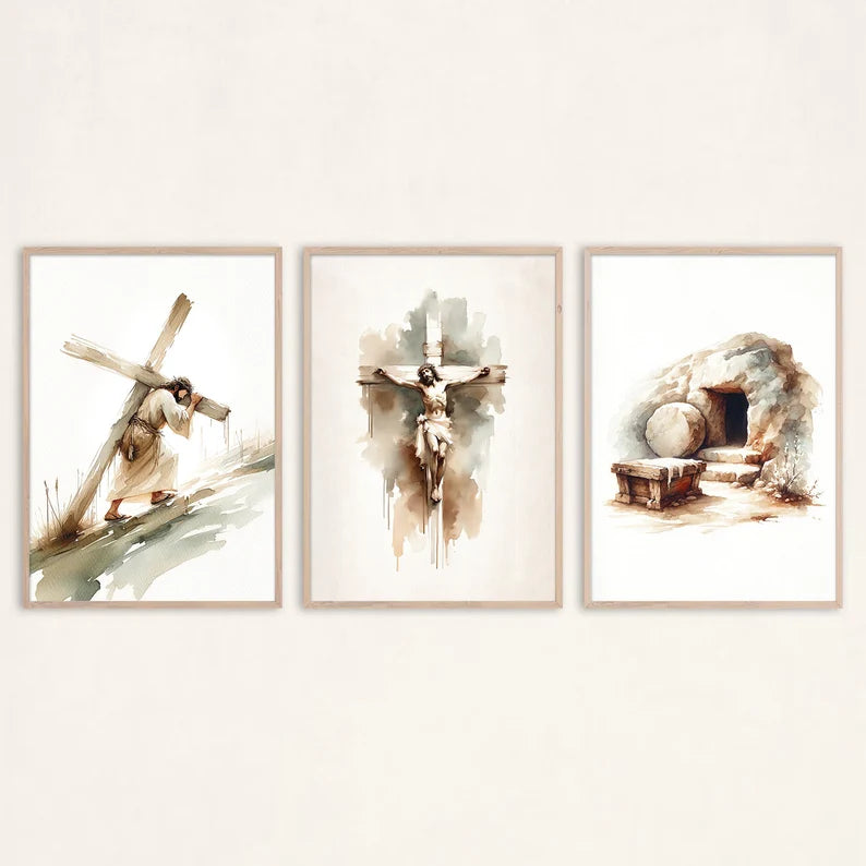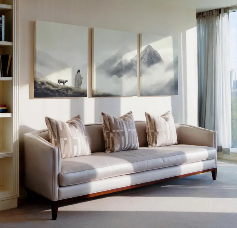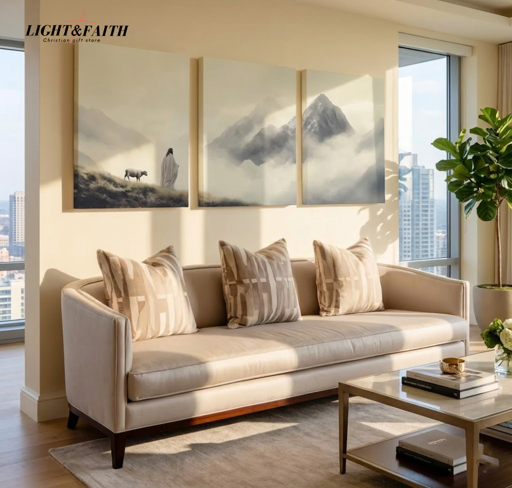 Christian Wall Art Set of 3, Jesus Leaves the 99, Meaningful Faith Gift Home Decor