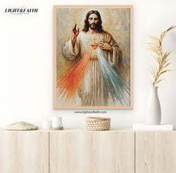Sacred Heart of Jesus Divine Mercy Wall Poster, Catholic Christian Religious Art, Inspirational Jesus Christ for Living Room or Church