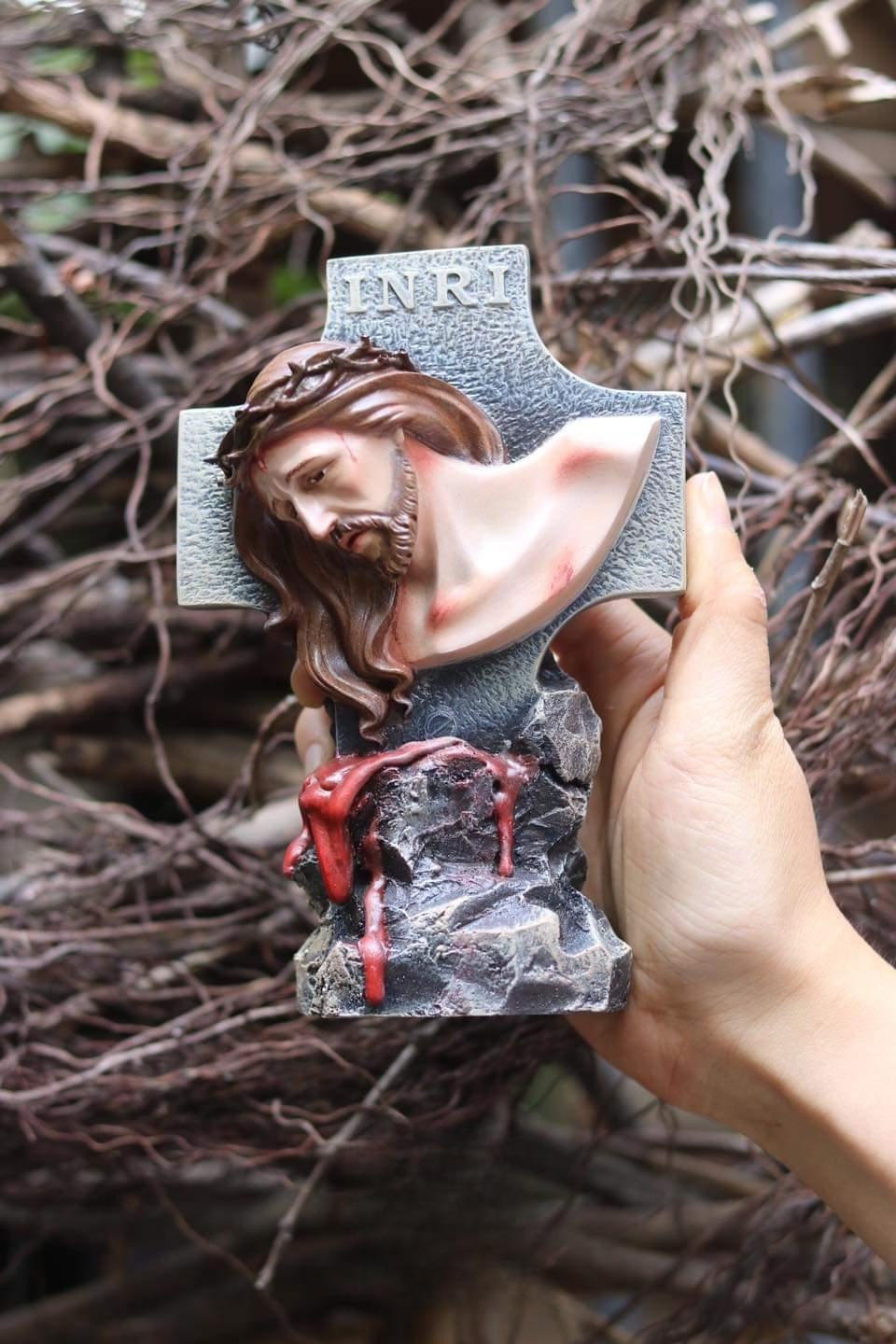 Jesus Crucifixion Statue, INRI Cross Figurine, Catholic Religious Decor, Christian Altar Statue, Passion of Christ Gift, Table Decoration