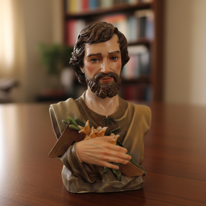Saint Joseph Pastel Statue, Hand Painted Religious Figurine, Catholic Gift for Home Altar, Car Dashboard Decor, Christian Table Decoration