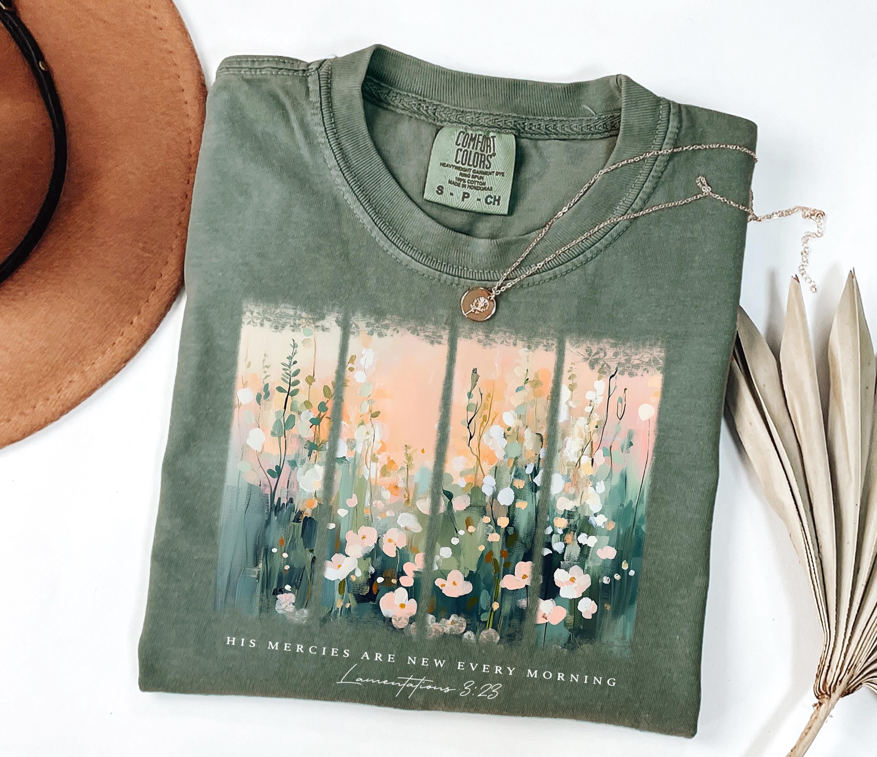 Comfort Colors® Christian Shirt His Mercies Are New Every Morning Bible Verse Shirt Religious Women Gift Faith Christian Floral Jesus Shirt