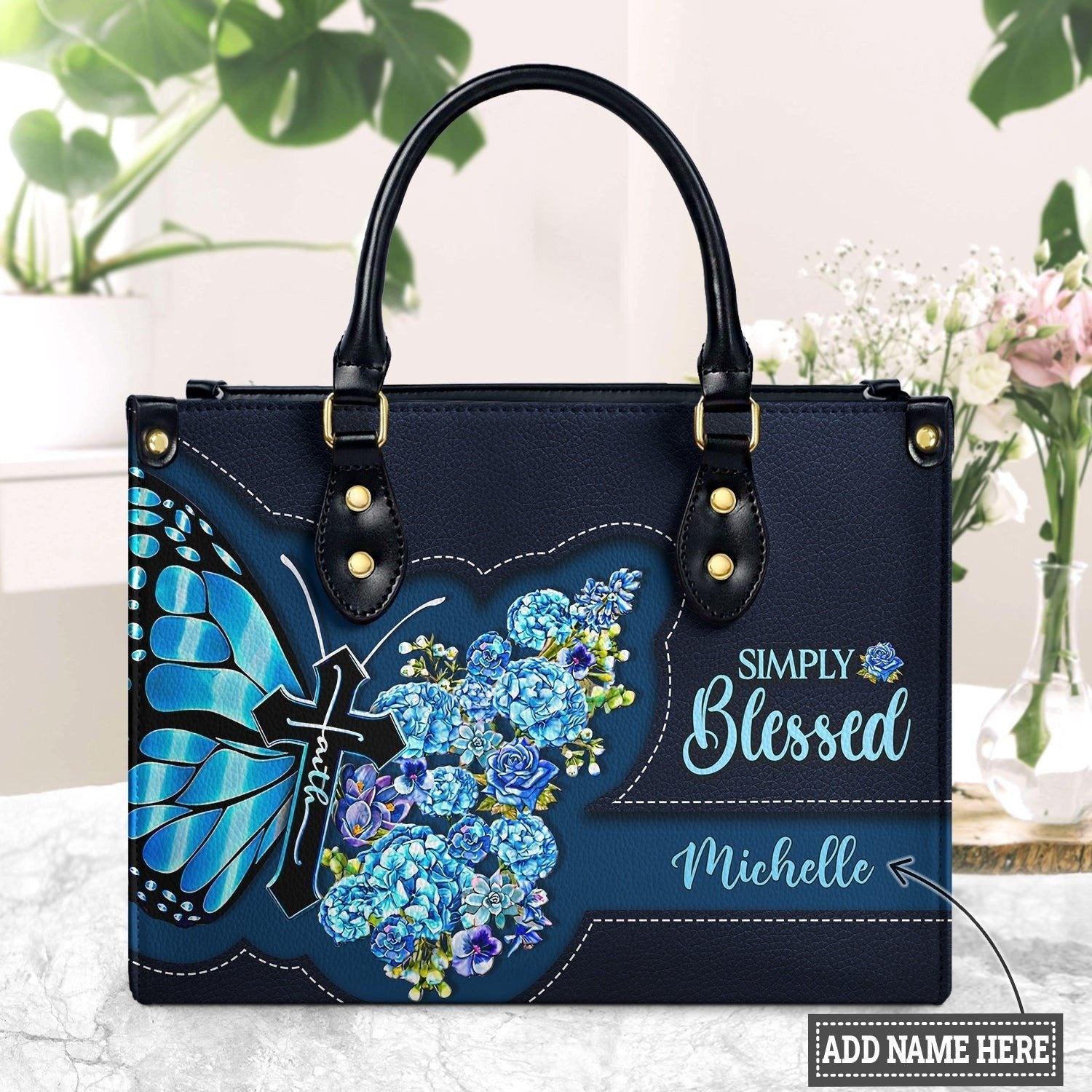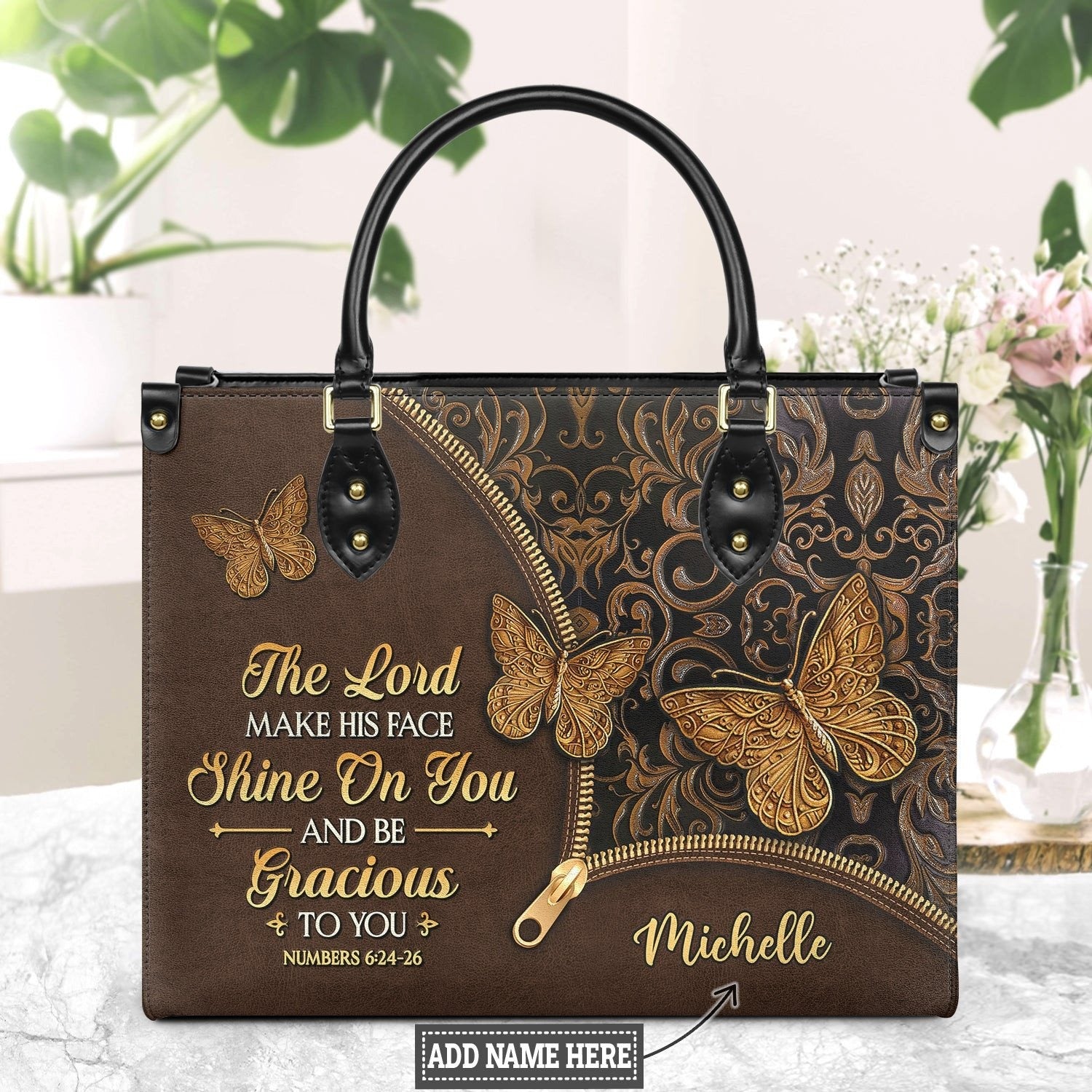 The Lord Make His Face Shine On You Numbers 6 24 26 Butterfly Leather Bag. BLAF03
