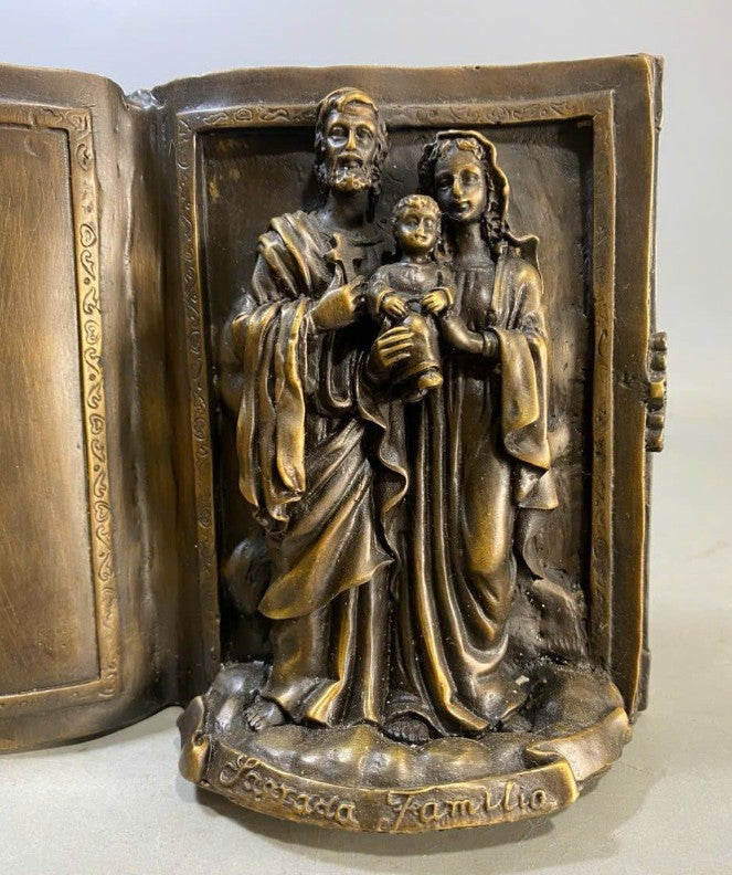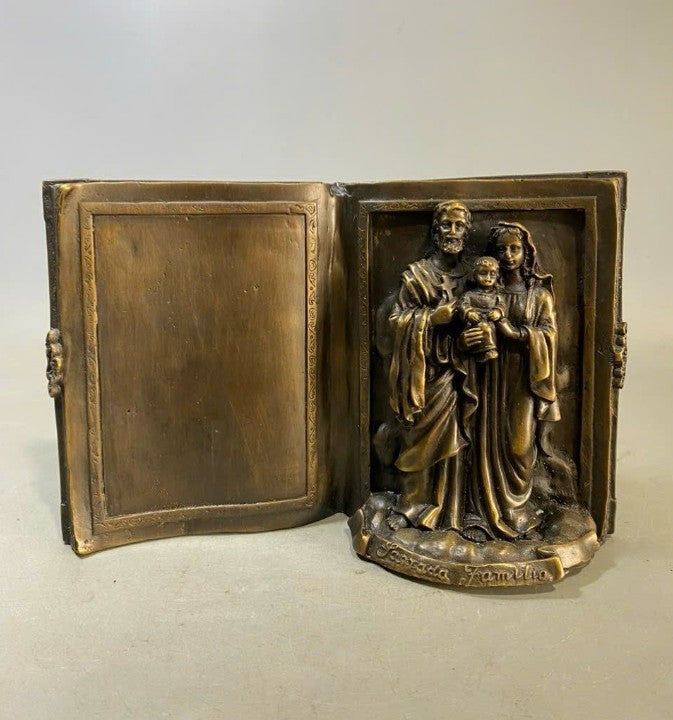 Premium Bronze Christian Family Book Statue, Religious Artwork for Home or Office, Religious Art for Home Décor